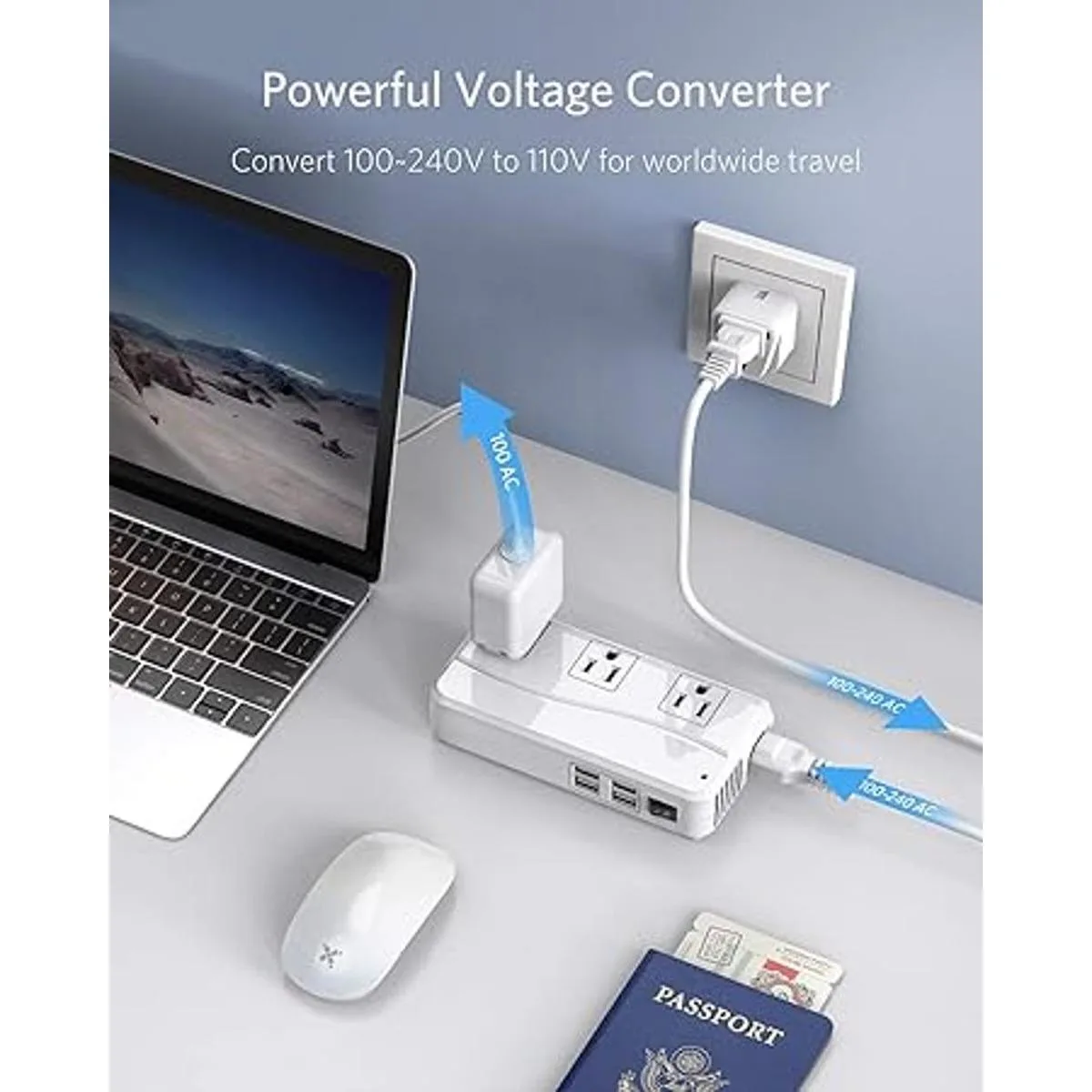 Adaptador de enchufe de uso mundial: 1 cable de alimentación estadounidense y 4 adaptadores internacionales UE/UK/AU/IN, el voltaje reductor convierte 100 V240 V a 100 120 V, por lo que puedes utilizar electrónica estadounidense en países de 220 V/240 V como Reino Unido, Europa continental, Australia, Japón, etc., más de 150 países de todo el mundo.