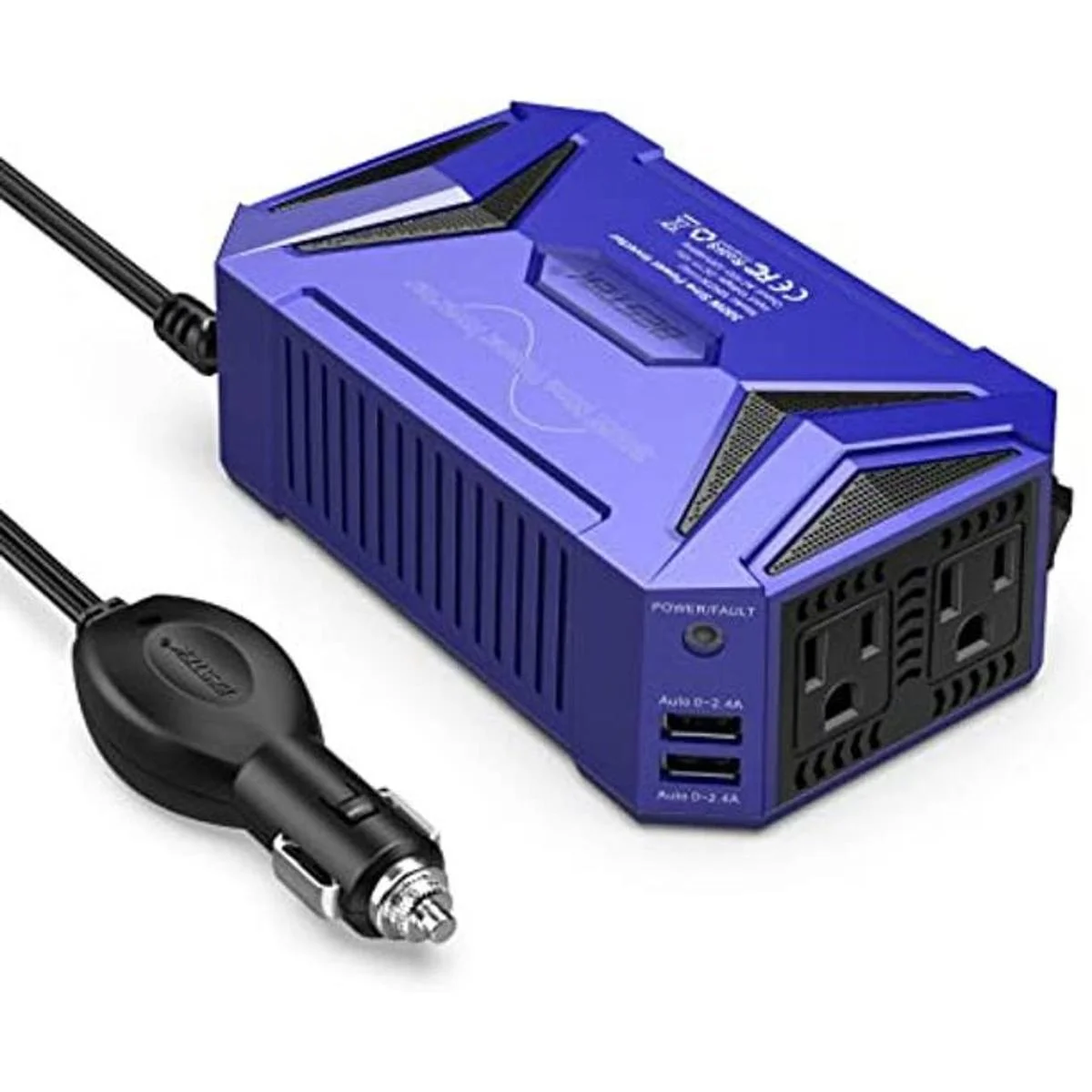 BESTEK Inversor de corriente de onda sinusoidal pura de 300 W, adaptador de coche CC 12 V a CA 110 V con puertos USB inteligentes duales de 4.2 A azul
