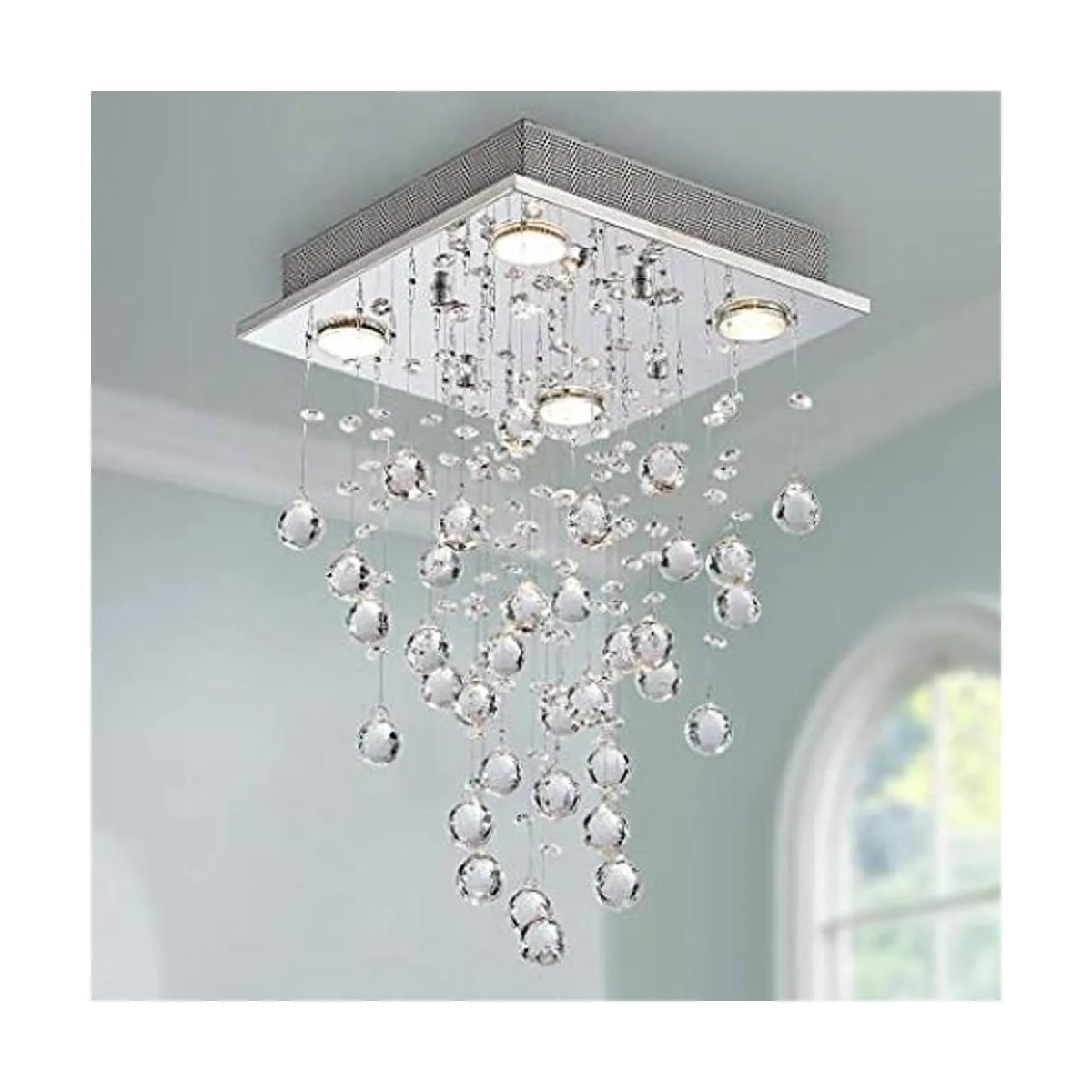 Bestier Lámpara de araña cuadrada de cristal moderno, lámpara de techo LED de montaje empotrado, lámpara colgante para comedor, baño, dormitorio, sala de estar, 4 bombillas GU10, 12 pulgadas de ancho y 20 pulgadas de alto