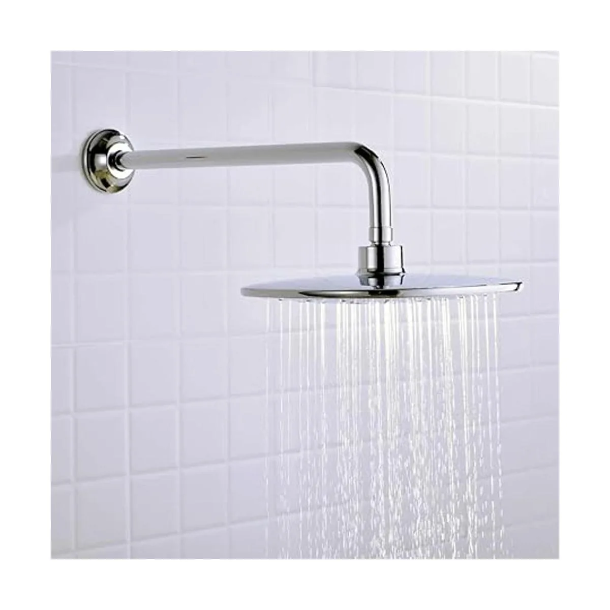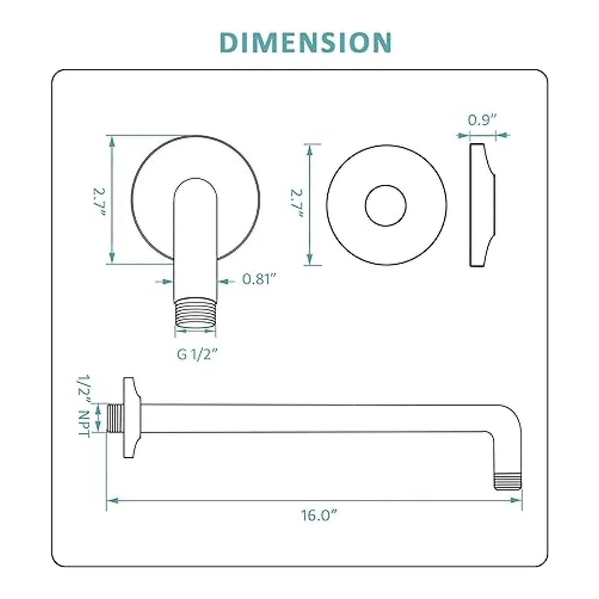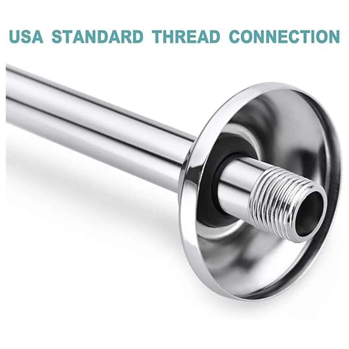 Montaje en pared, conector de fontanería americano de 0.5 in. La salida del tubo de extensión de ducha alcanza 16 pulgadas, con brida de brazo de ducha de 2.7 pulgadas de diámetro.