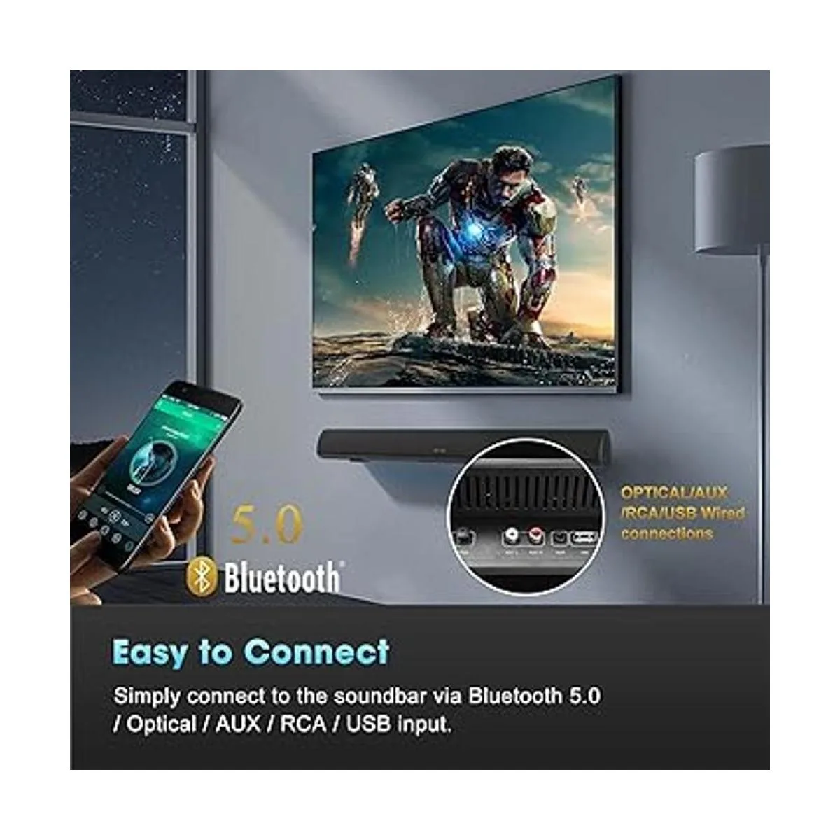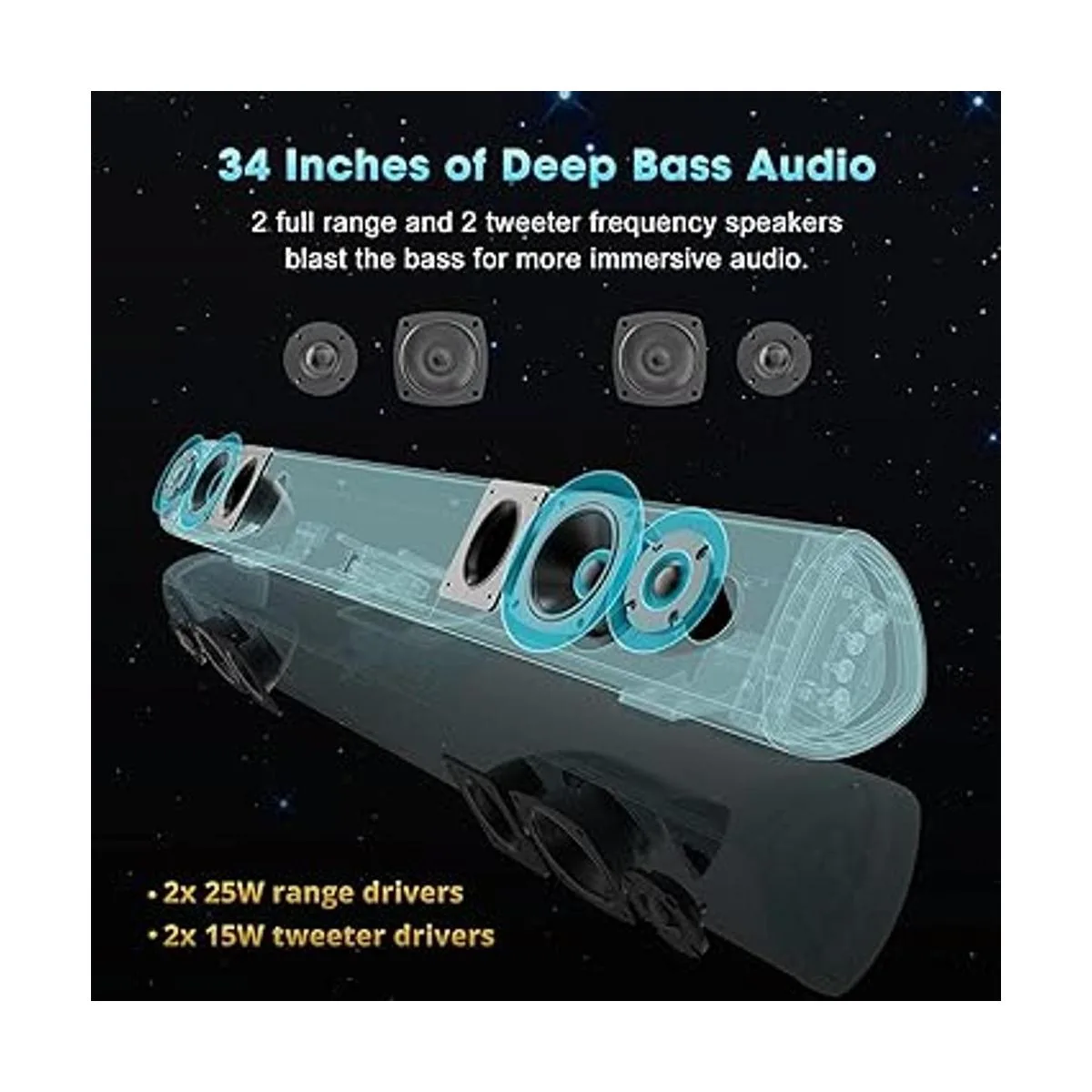 Bestisan Barra de sonido, sistema de barra de sonido de cine en casa de 80 W con función remota por infrarrojos, altavoz de audio Bluetooth 5.0 con cable e inalámbrico tripulantegraves ajustable, 34 pulgadas, versión de carne de res 2021