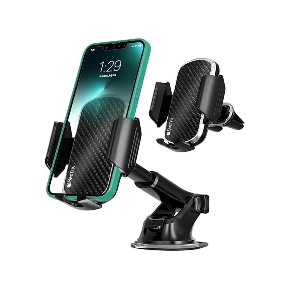 BesTrix Soporte para teléfono para automóvil, soporte para teléfono de automóvil, salpicadero, parabrisas y ventilación de aire, para todos los automóviles, se instala en minutos, soporta todos los teléfonos de hasta 6.7 pulgadas, soporte para teléfono para tablero de automóvil