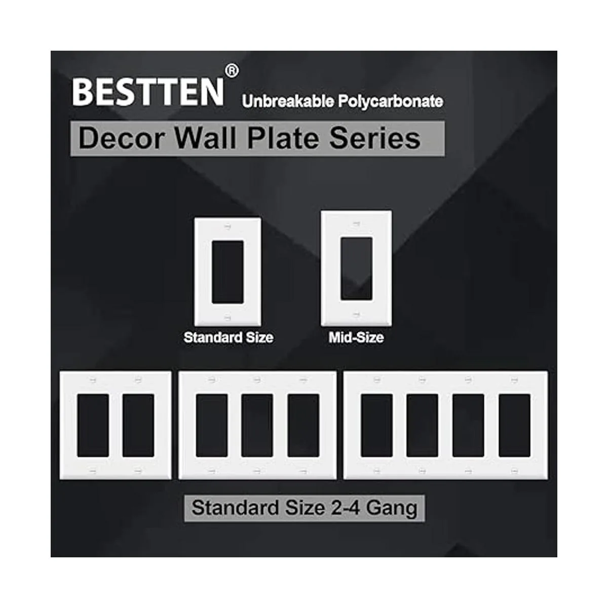 BESTTEN Decorator Placa de pared 10 unidades, 2 bandas de tamaño estándar, cubierta de salida para receptáculos GFCI y USB, 4.5 x 4.5 in, material de policarbonato irrompible, listado por UL, color blanco