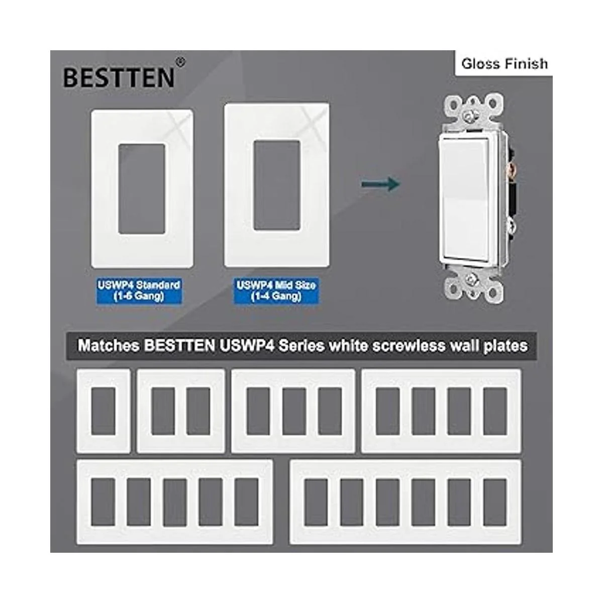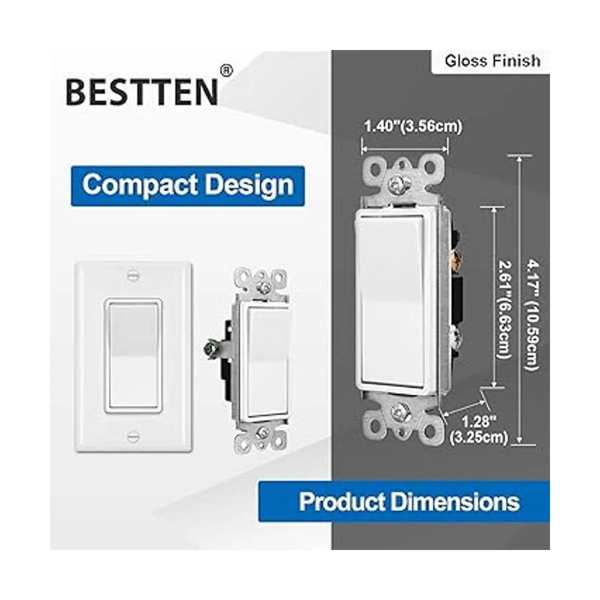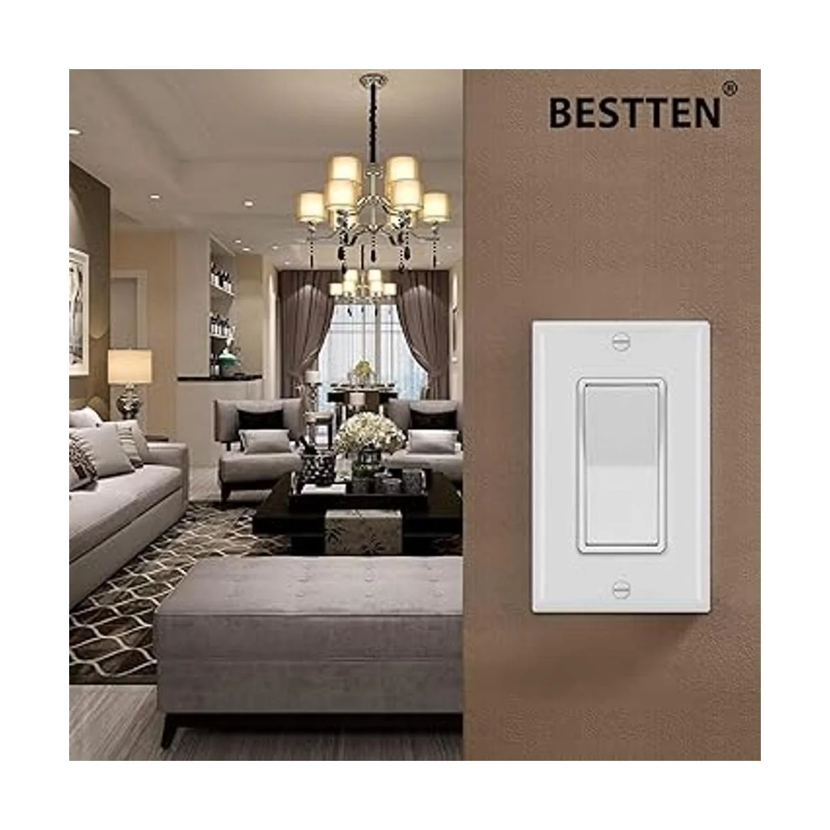 BESTTEN Proporciona 3 años de garantía sin preocupaciones para todo tipo de interruptores de luz: interruptor decorador, interruptor de palanca, interruptor doble, interruptor de combinación, interruptor de atenuación, interruptor de sensor