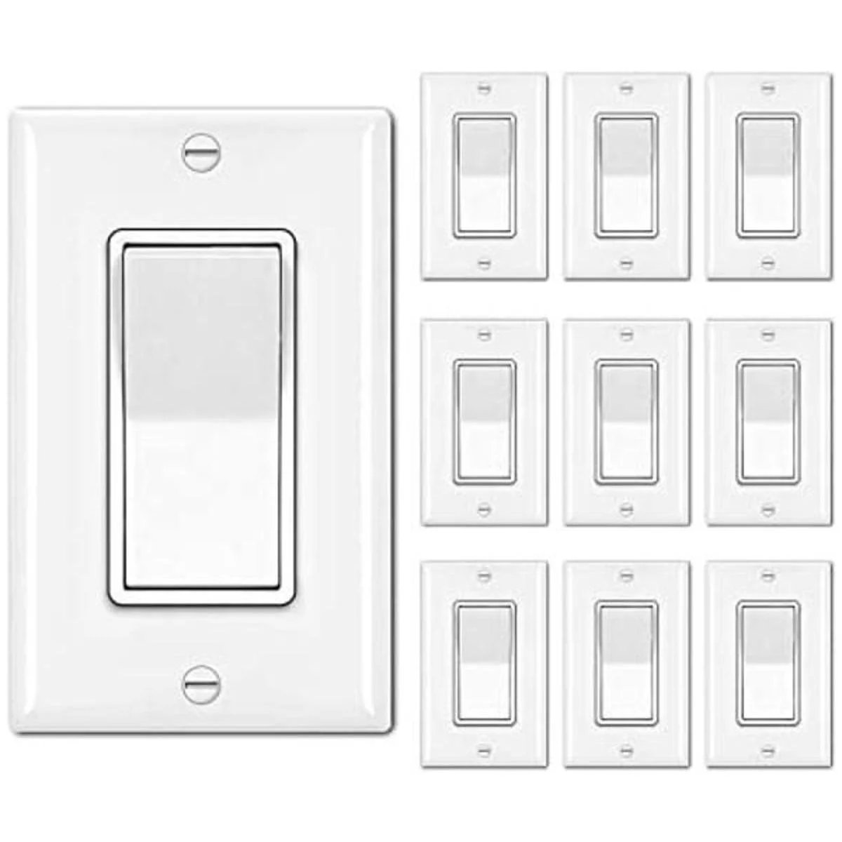 BESTTEN Interruptor de luz de pared con placa de pared, 15 A, 120277 V, interruptor de encendido y apagado para LED y otras lámparas, certificado UL, color blanco