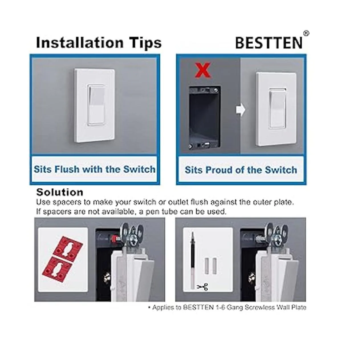 En comparación con un diseño de sándwich de otras marcas, la placa de pared sin tornillos BESTTEN no tiene costuras a lo largo del borde mejorando el aspecto y no acumula polvo