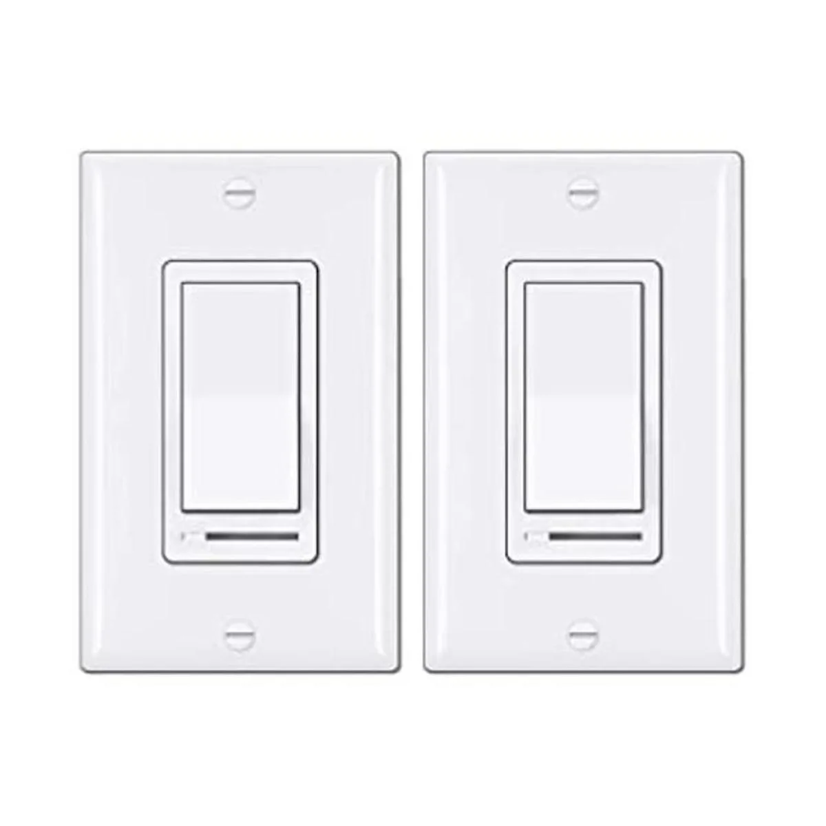BESTTEN Paquete de 2 interruptores de luz reguladora, control de iluminación universal, un solo polo o de 3 vías, compatible con lámpara LED regulable, CFL, incandescente, bombilla halógena, placa de pared decorativa incluida, color blanco
