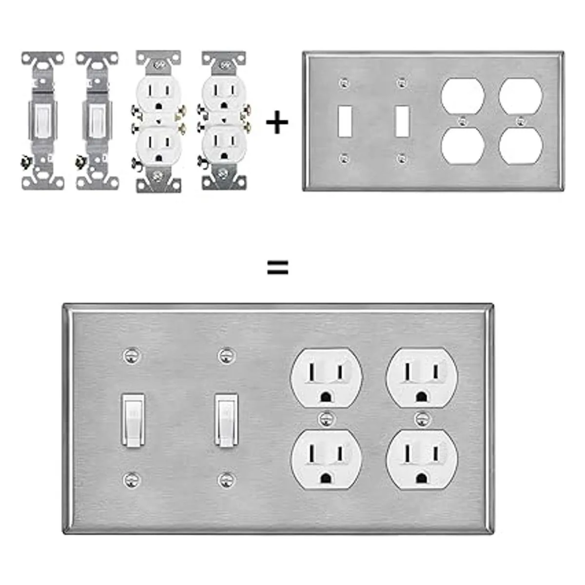 Perfecto con salida dúplex, interruptor de luz de conmutación horizontal dual, decoración/USB/receptáculo GFCI, interruptor de luz basculante, regulador y más