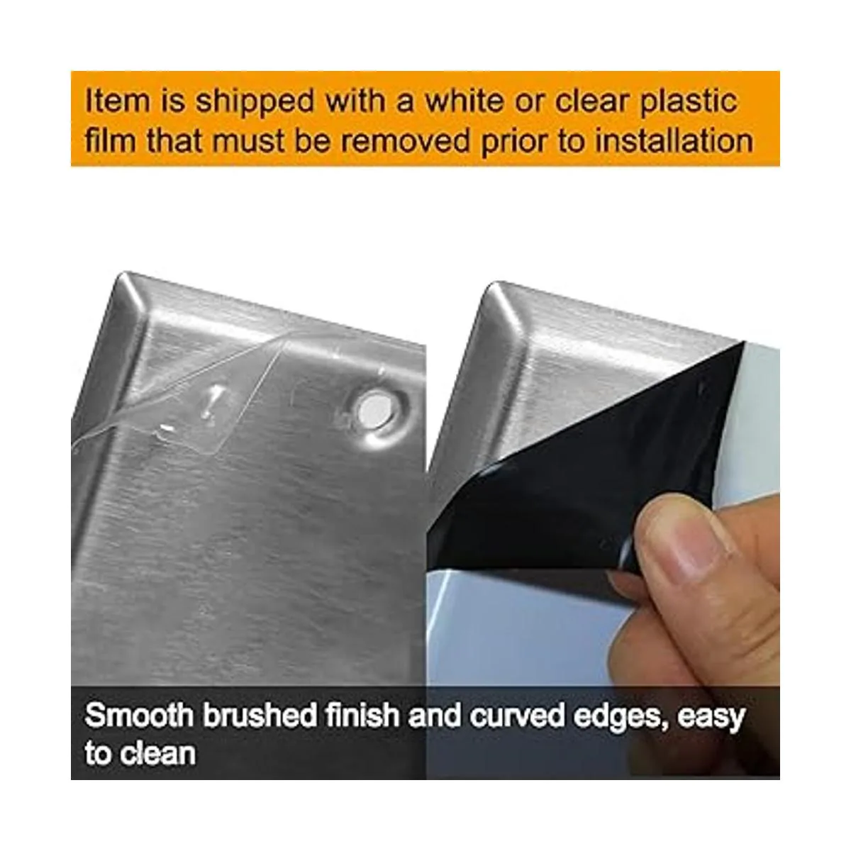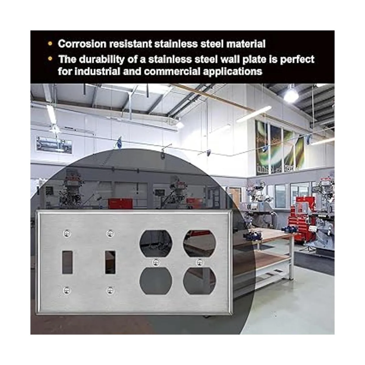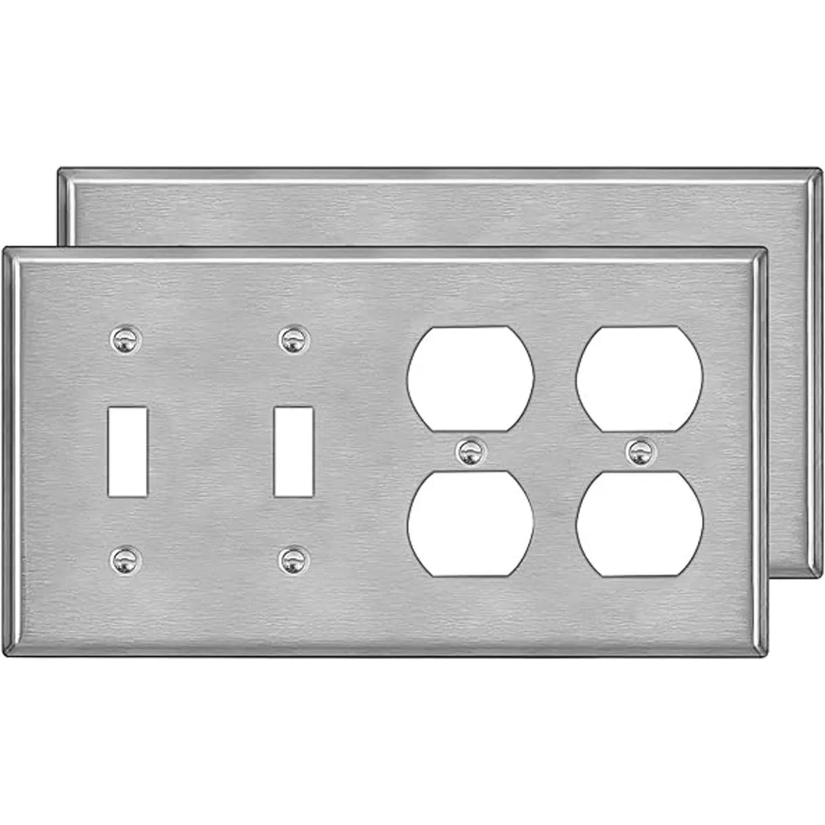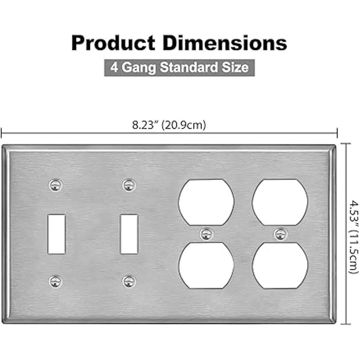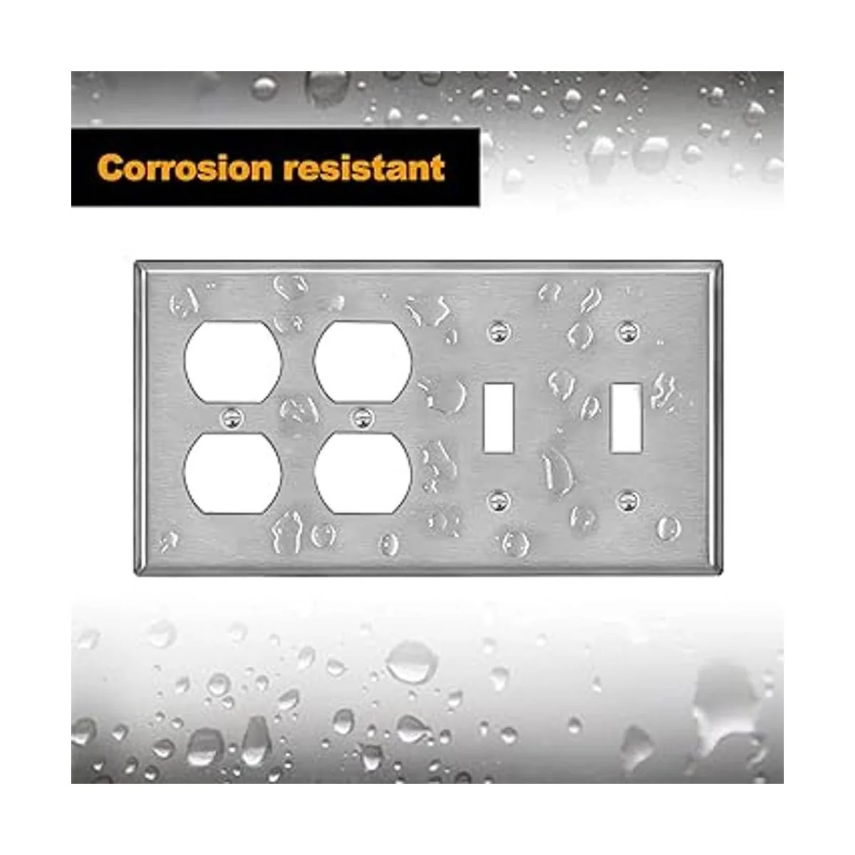 BESTTEN Placa de pared de metal con combinación de 4 cuadrículas, 2 dúplex2 pinzas, salida de acero inoxidable anticorrosión y cubierta de interruptor, tamaño estándar, acabado cepillado, plateado, listado UL