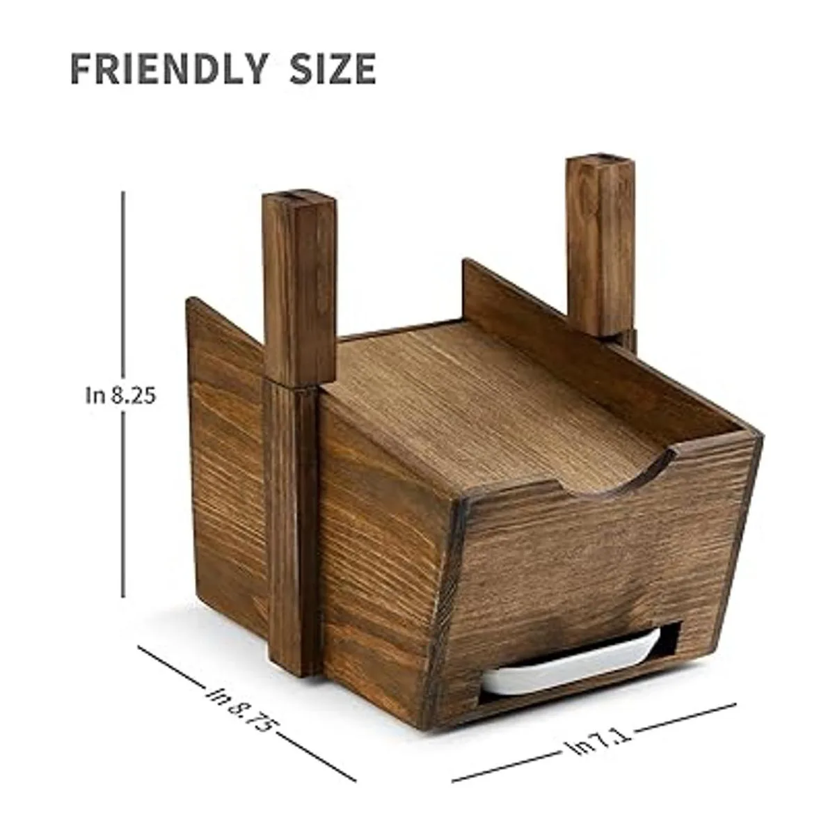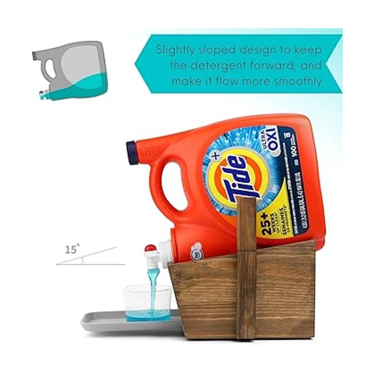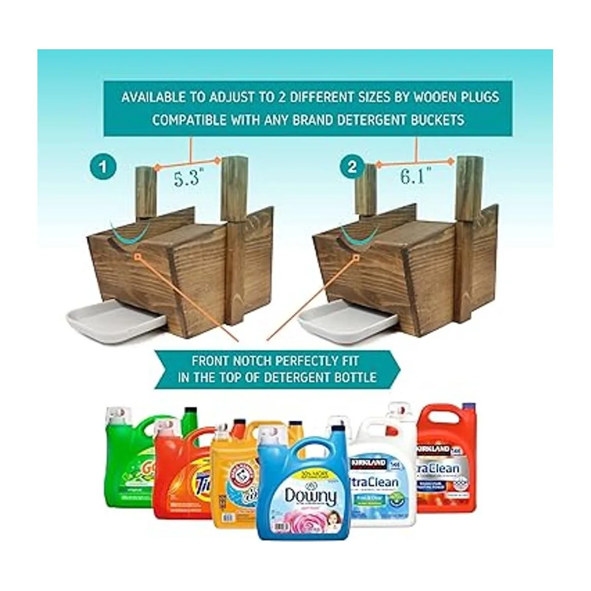 Accesorios de lavandería de granja: el recogedor de goteo de detergente está hecho a mano con madera de pino natural, dos tapones de madera para mantener la botella en su lugar de forma segura. Diseño ligeramente inclinado para mantener el detergente hacia adelante, y una muesca fuera de la parte delantera de la plataforma que se forma perfectamente en la parte superior de la botella de detergente.