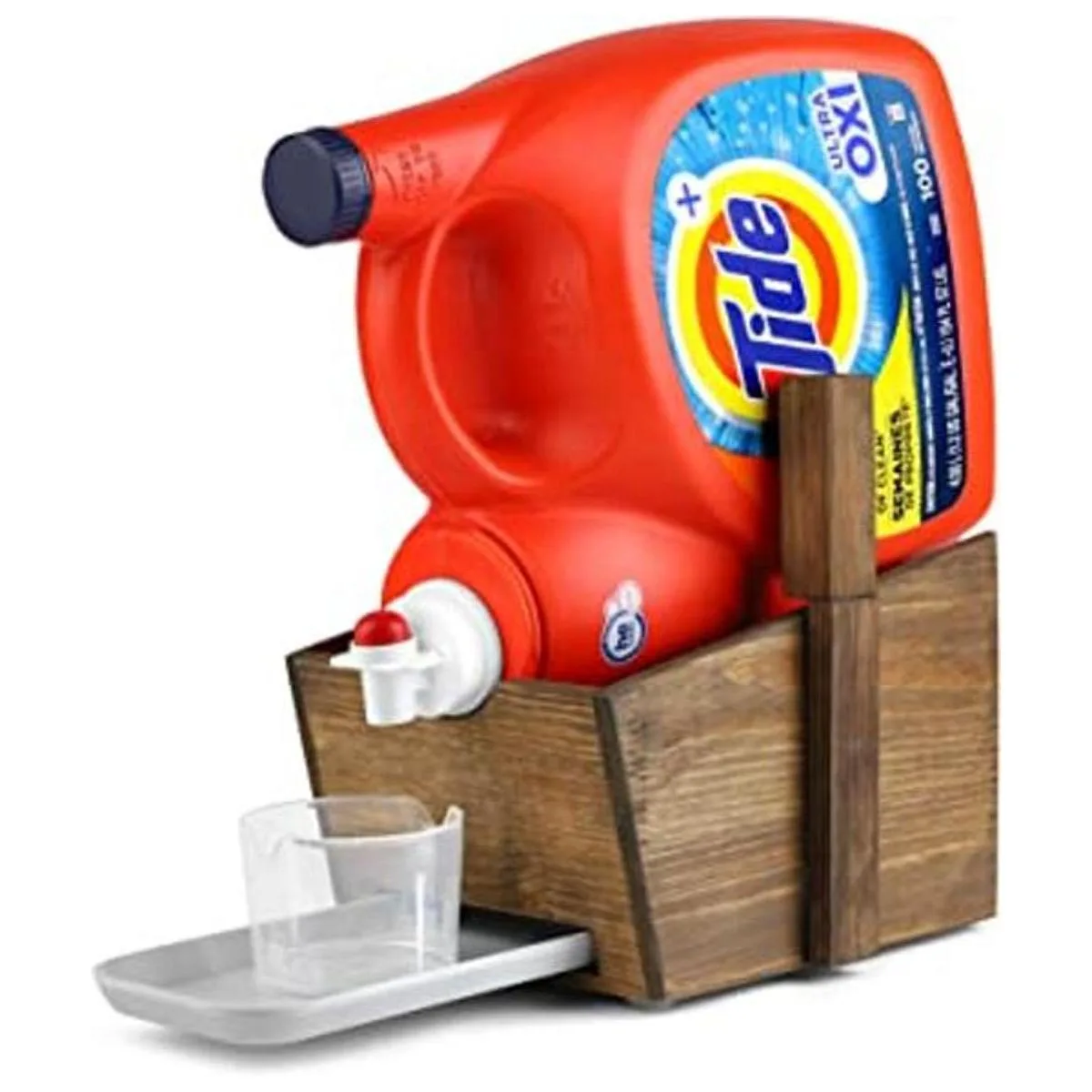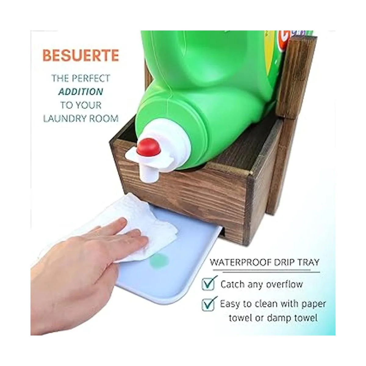 Estación de lavandería de estilo granja: el soporte para detergente de lavandería y la bandeja de goteo es una plataforma que permite una dispensación fácil y cómoda de detergente líquido para ropa y permite llenar la cantidad exacta necesaria. El recogedor de goteo de lavandería proporciona una solución innovadora a tu rutina diaria