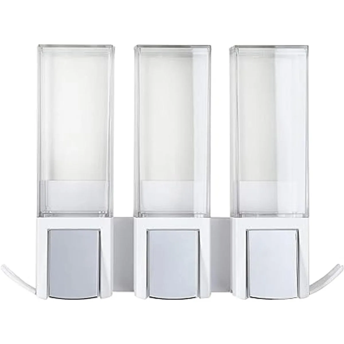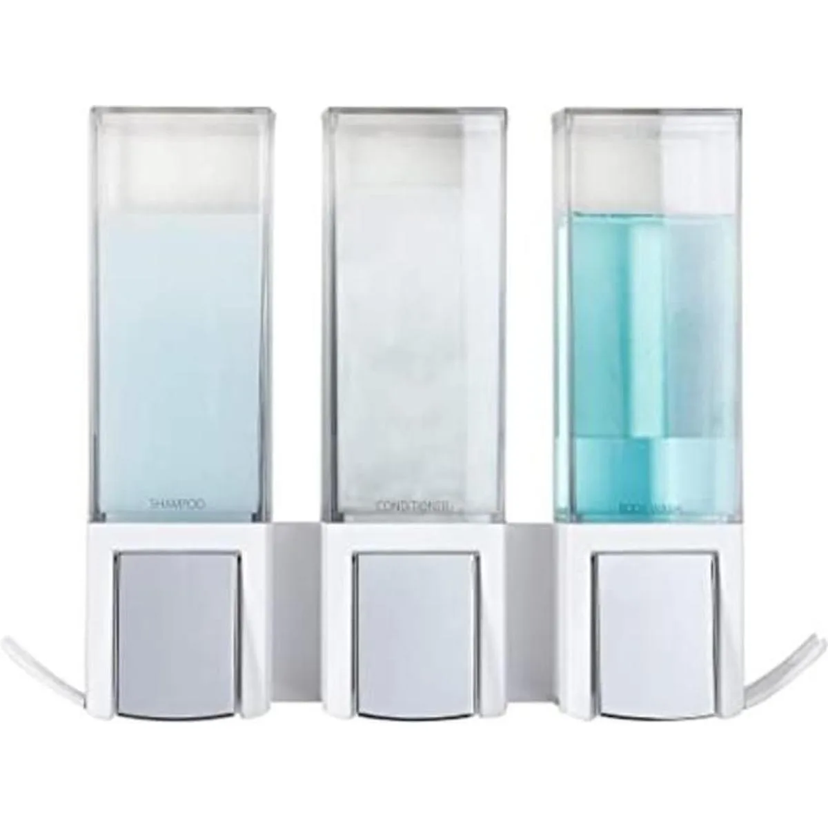 Better Living Products Clever Dispensador triple de jabón y ducha, blancocromado