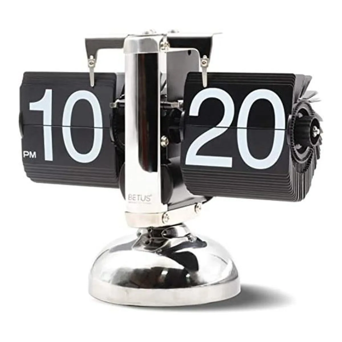 Betus Reloj de escritorio abatible, estilo mecánico retro, pantalla digital alimentada por pilas, decoración del hogar y la oficina, 8 x 6.5 x 3 pulgadas negro