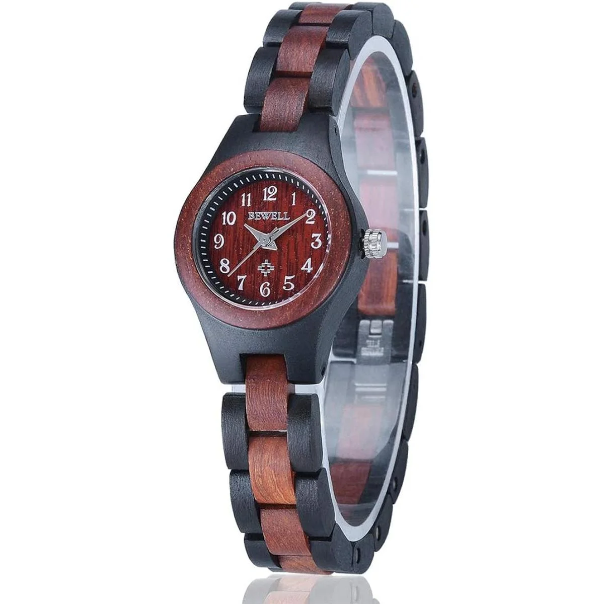BEWELL W123A Reloj de pulsera de arce natural hecho a mano con pantalla analógica, ligero, pequeño y delgado, reloj de madera para mujer