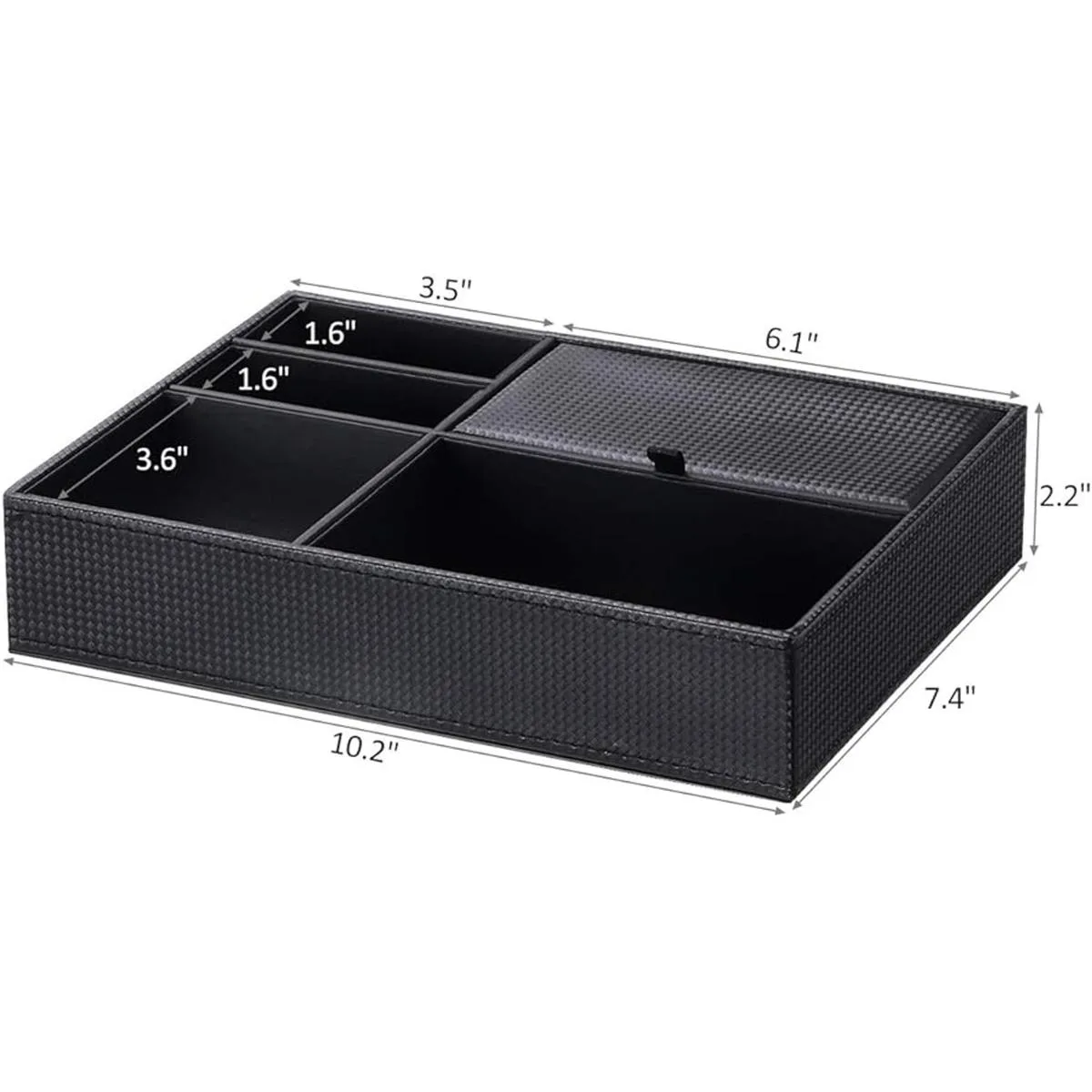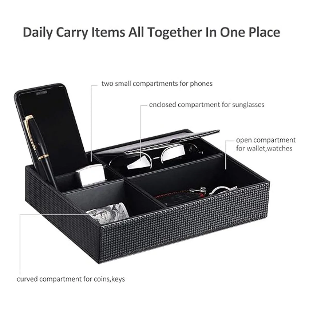 Calidad superior: hecha de cubierta de fibra de carbono negra texturizada de calidad, costuras bien hechas, interior refinado, esta bandeja de tocador bien hecha es resistente y elegante