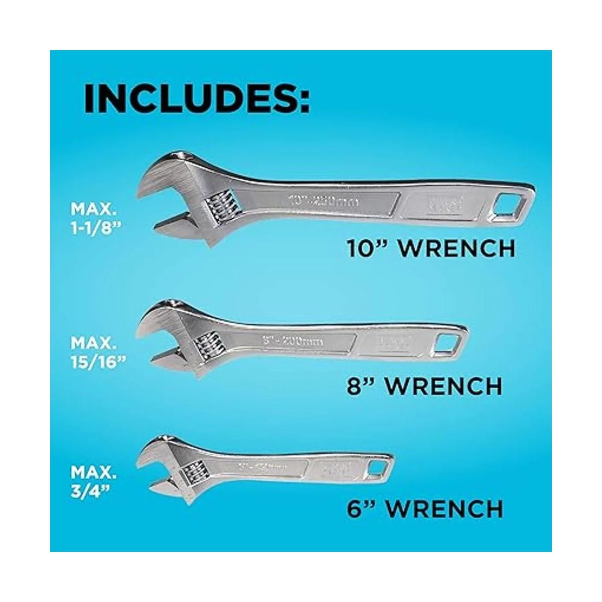 Incluye: el juego cuenta con 6 pulgadas, 8 pulgadas y 10 pulgadas. Llaves ajustables para hacer frente a una amplia variedad de tareas