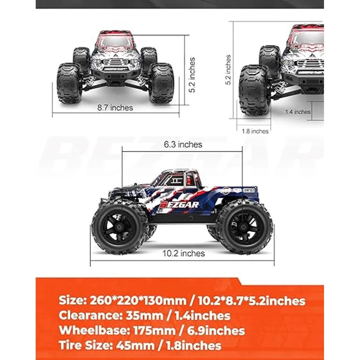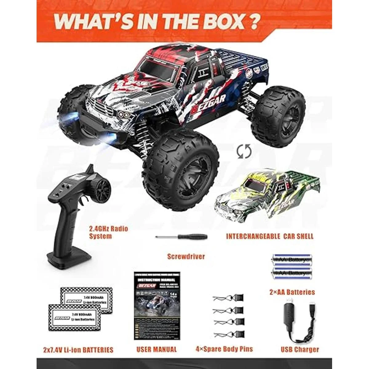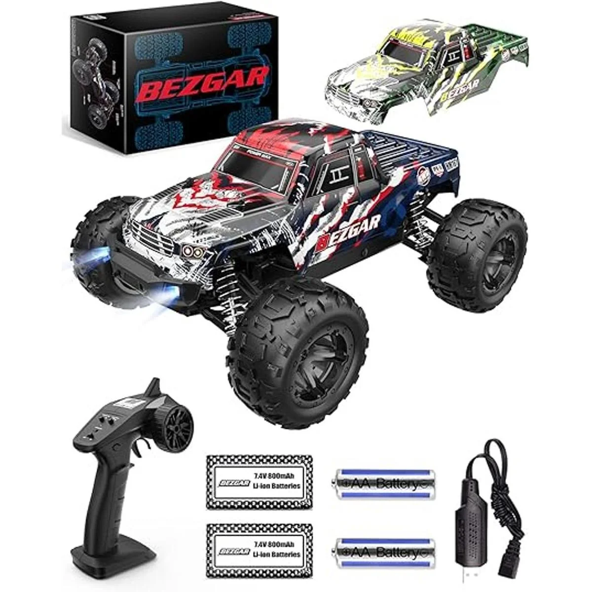 BEZGAR 7 Camión a control remoto de juguete, escala 116, tracción 4×4, alta velocidad de más de 24 mph, eléctrico, todoterreno a control remoto con dos pilas recargables para niños y adultos