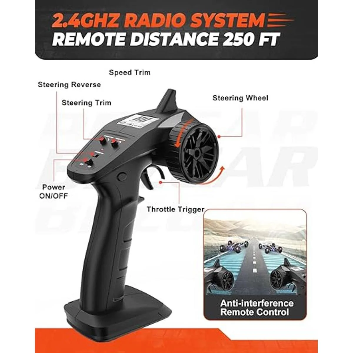 Vehículo de control remoto de velocidad extrema Equipado con motor RC390 de alta calidad que genera una gran potencia para el vehículo RC Esto ha mejorado la aceleración y permite que el automóvil a control remoto tenga una velocidad máxima de 24 mph 40 km/hr, lo que le da una mayor competitividad en la carrera