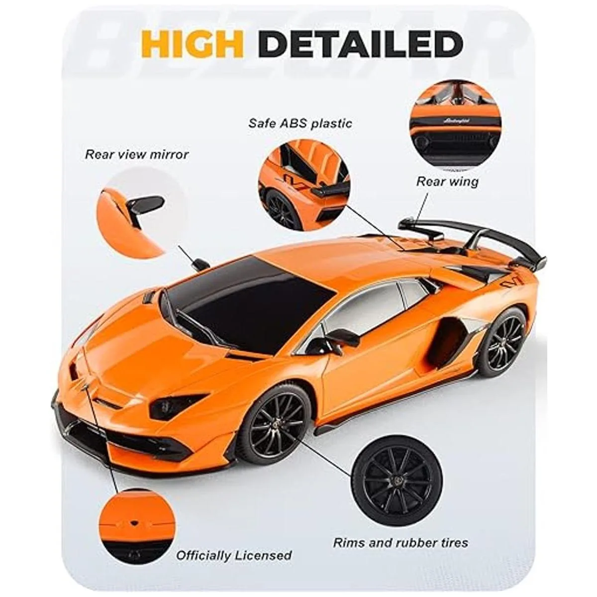 BEZGAR Juguete de grado 124 escala con licencia de control remoto coche, Lamborghini Aventador SVJ Electric Sport Racing Hobby juguete de coche modelo vehículo para niños niños adolescentes y niños, regalos de Navidad