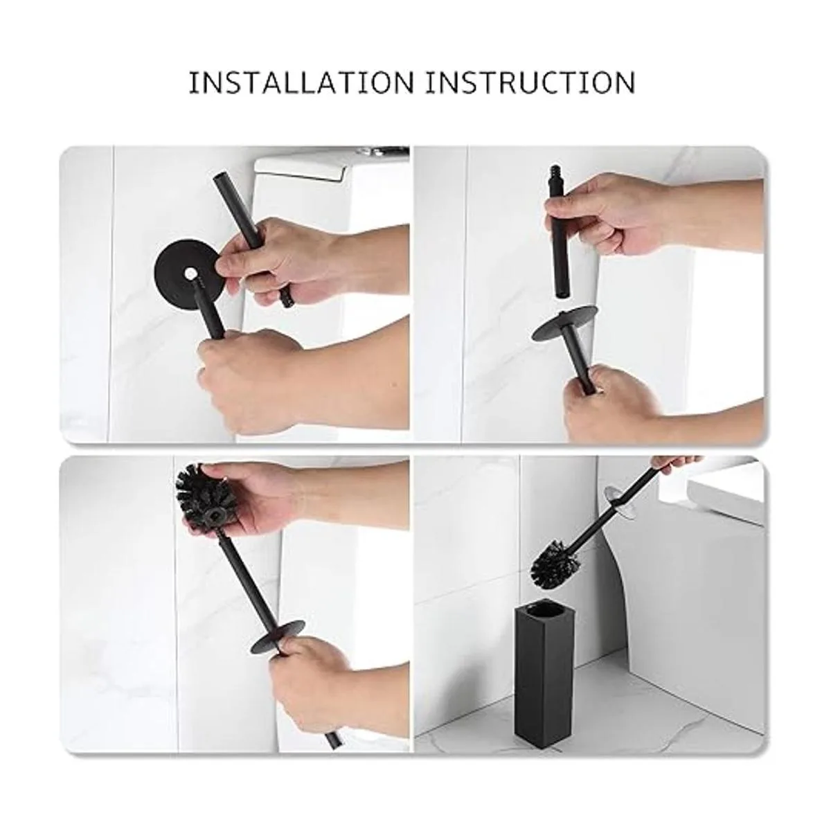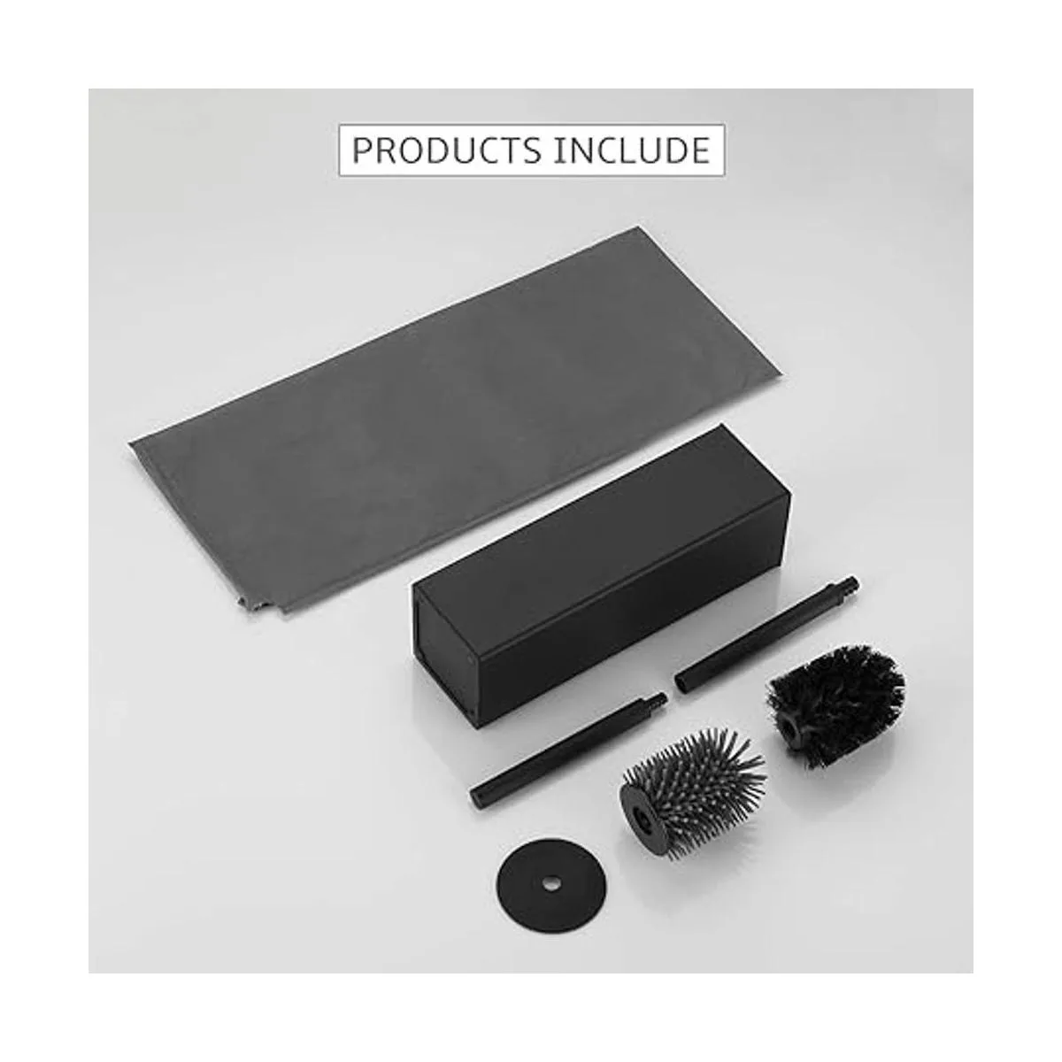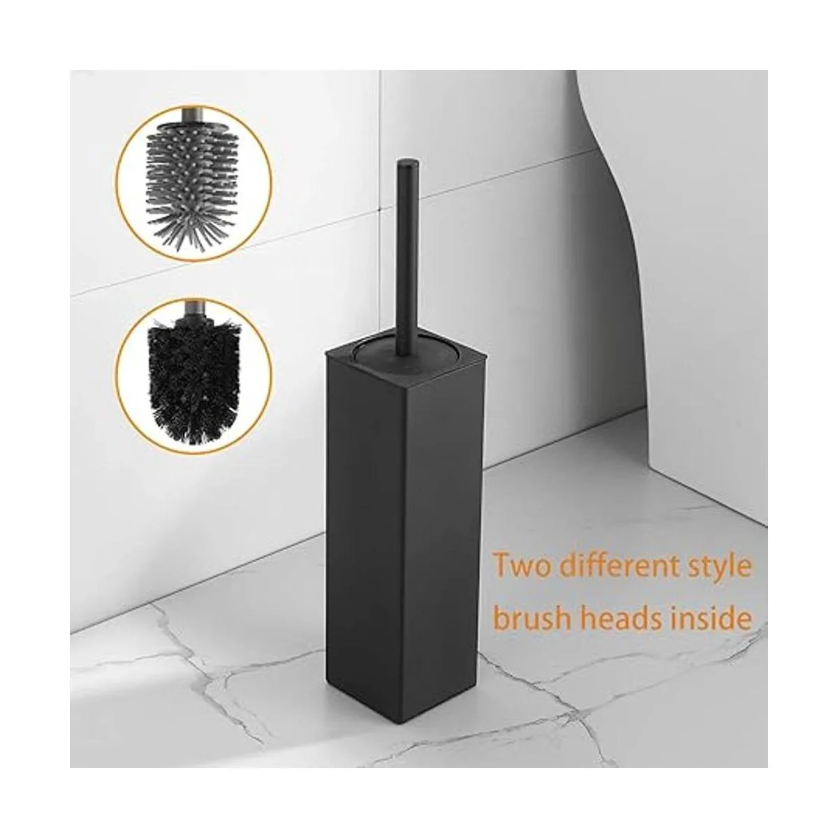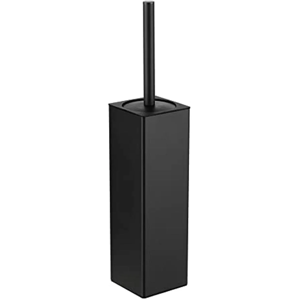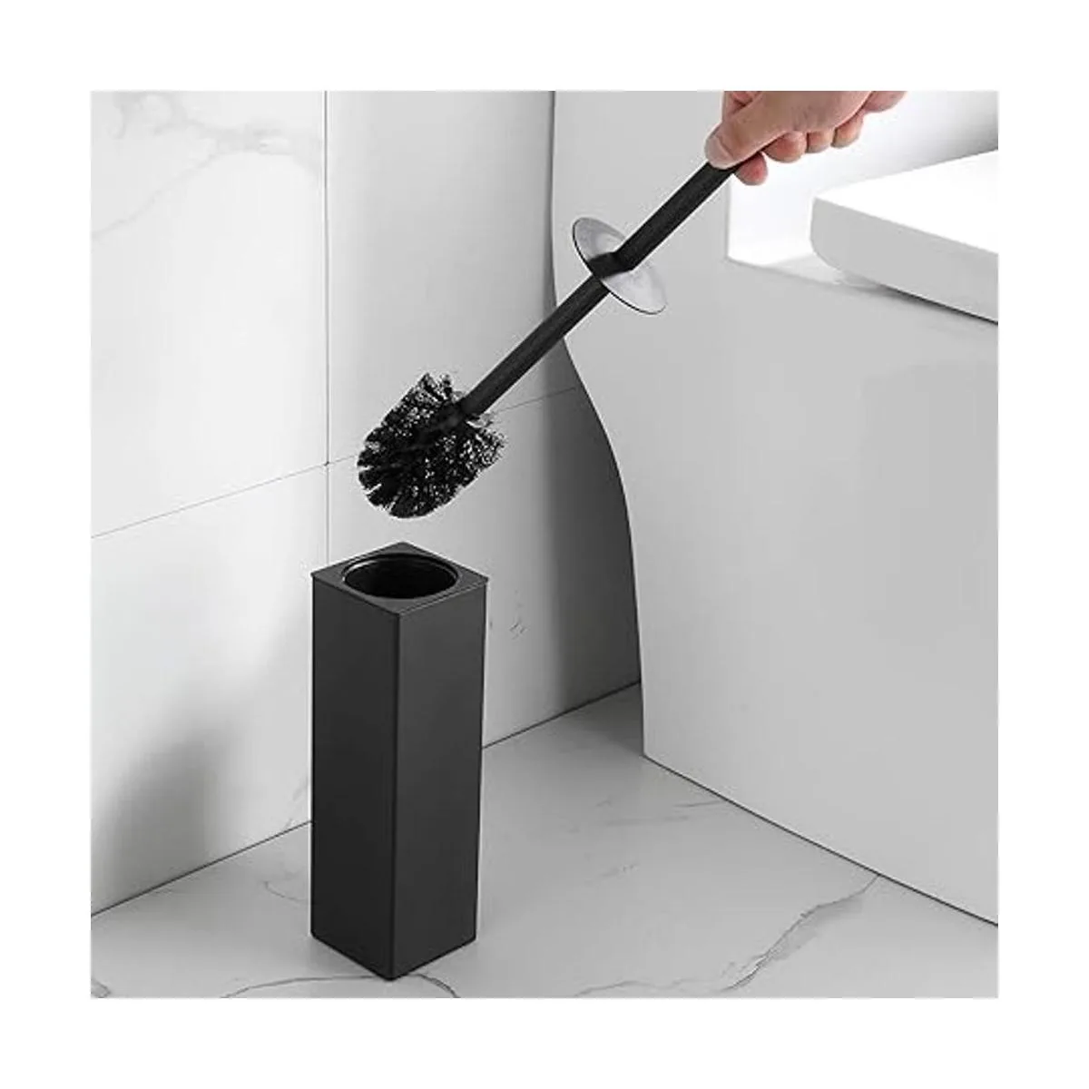 BGL Cepillo de inodoro de aluminio independiente con soporte para almacenamiento y organización de baño, cepillo limpiador y soporte, diseño cuadrado resistente y ahorra espacio negro