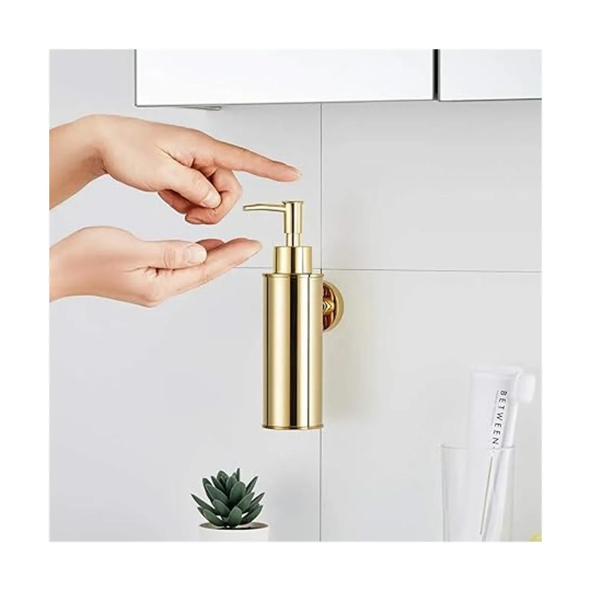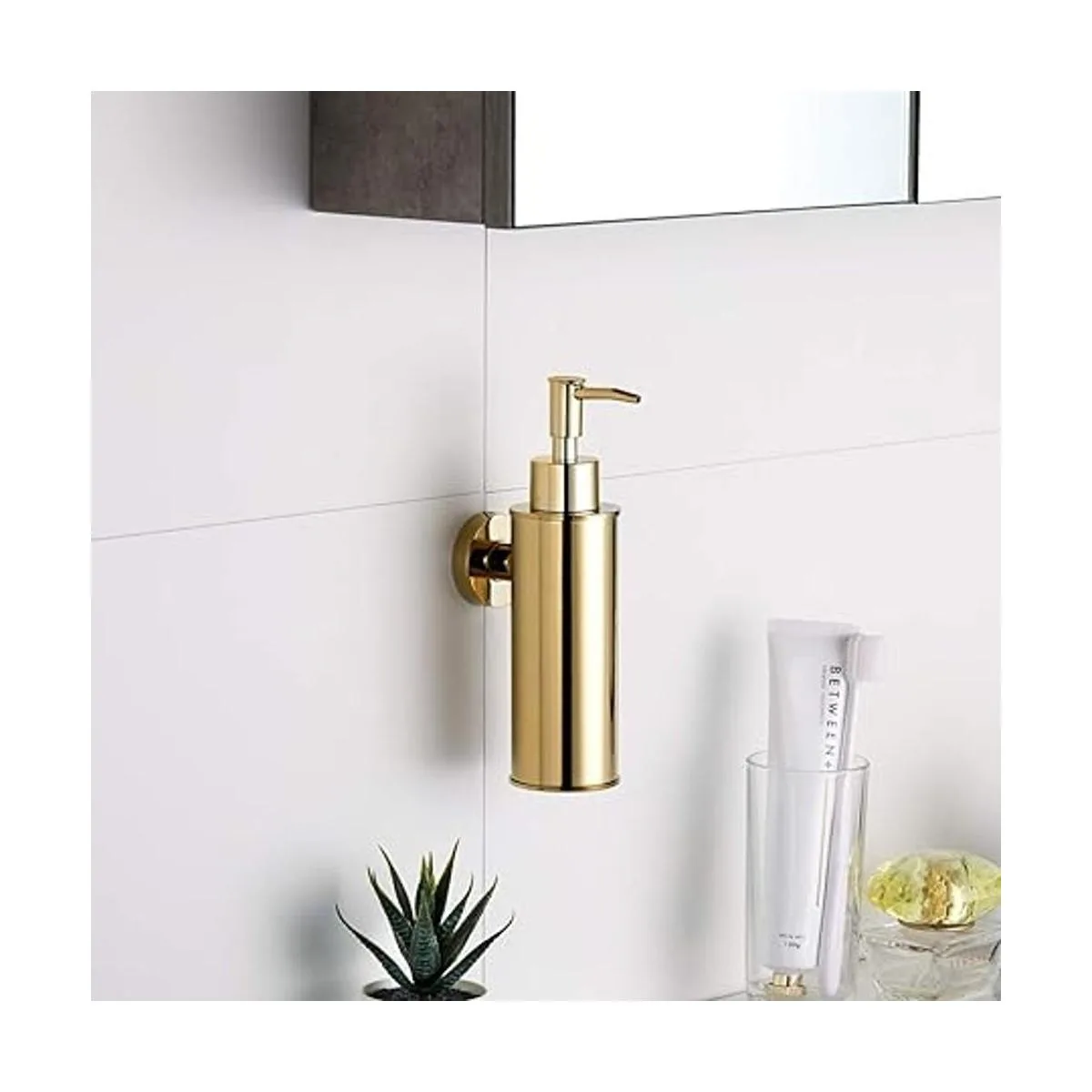 BGL Dispensador de jabón de acero inoxidable 304 para montaje en pared, dispensador de líquidos y jabón para cocina y baño dorado, redondo
