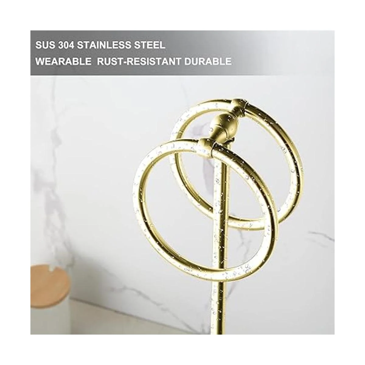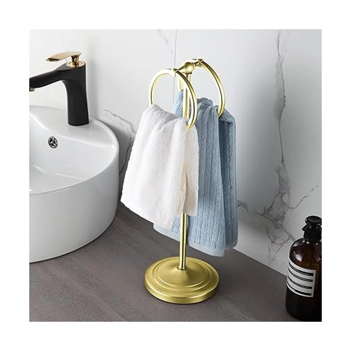BGL Soporte para toallas de mano de 17 pulgadas para toallas de mano para encimeras de baño o cocina, para guardar toallas de mano, paños o paños de cocina, 2 anillos para colgar, dorado..