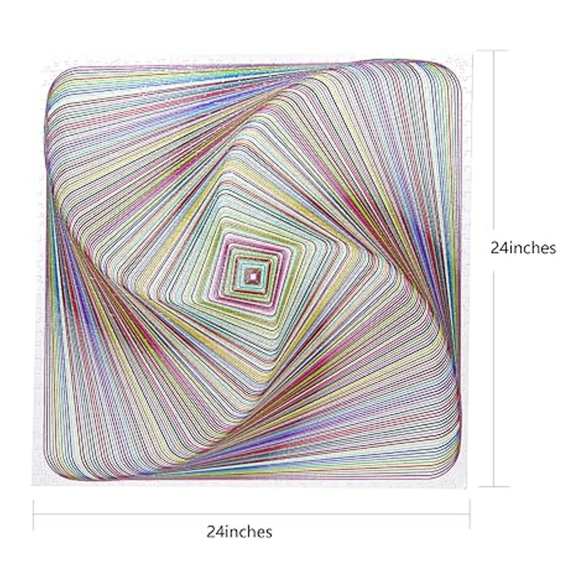 Los rompecabezas Bgraamiens Los cuadrados coloridos 3D trenzados son 1.000 piezas dignas de cualquier experto rompecabezas. Hecho de aglomerado azul resistente en papel reciclado. Tamaño del acabado: 24 x 24 pulgadas.