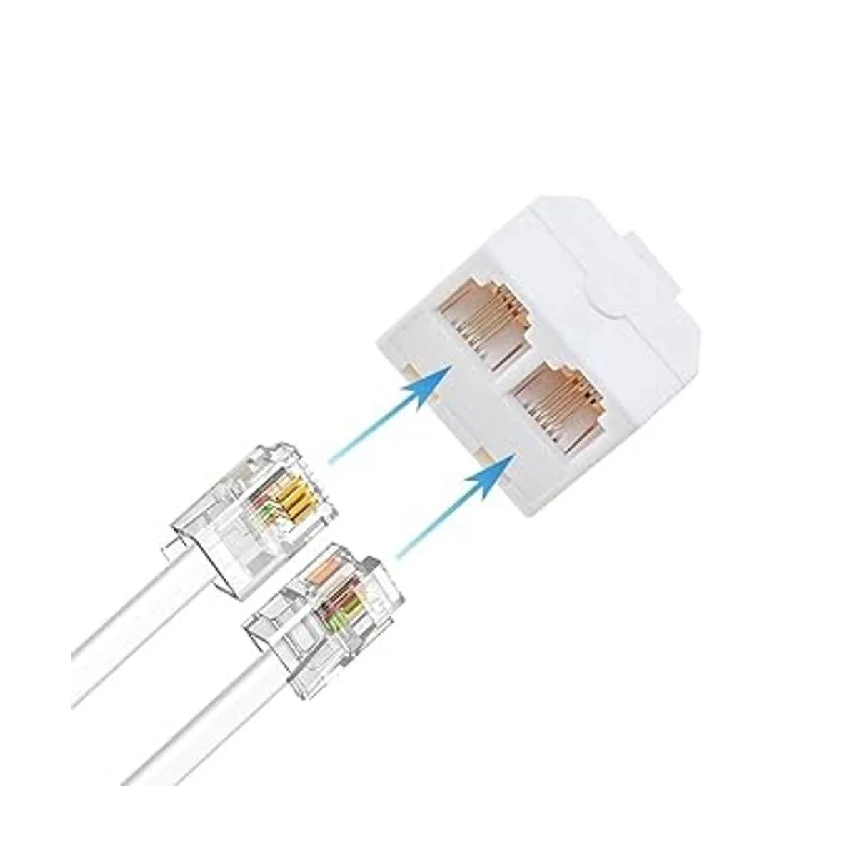 Fácil de usar: el divisor de teléfono bidireccional es muy fácil de usar. Conecta el adaptador en el enchufe del teléfono RJ11 y conecta tus cables RJ11 no incluidos al adaptador.
