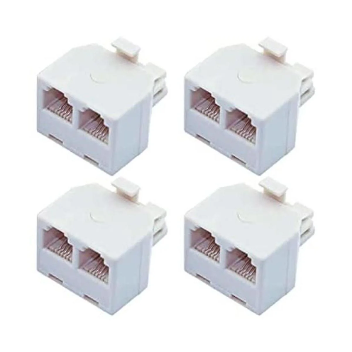El paquete incluye: 4 divisores de conector de teléfono blanco un extremo es de enchufe macho 6P4C y el otro extremo es dos enchufes RJ11 6P4C.