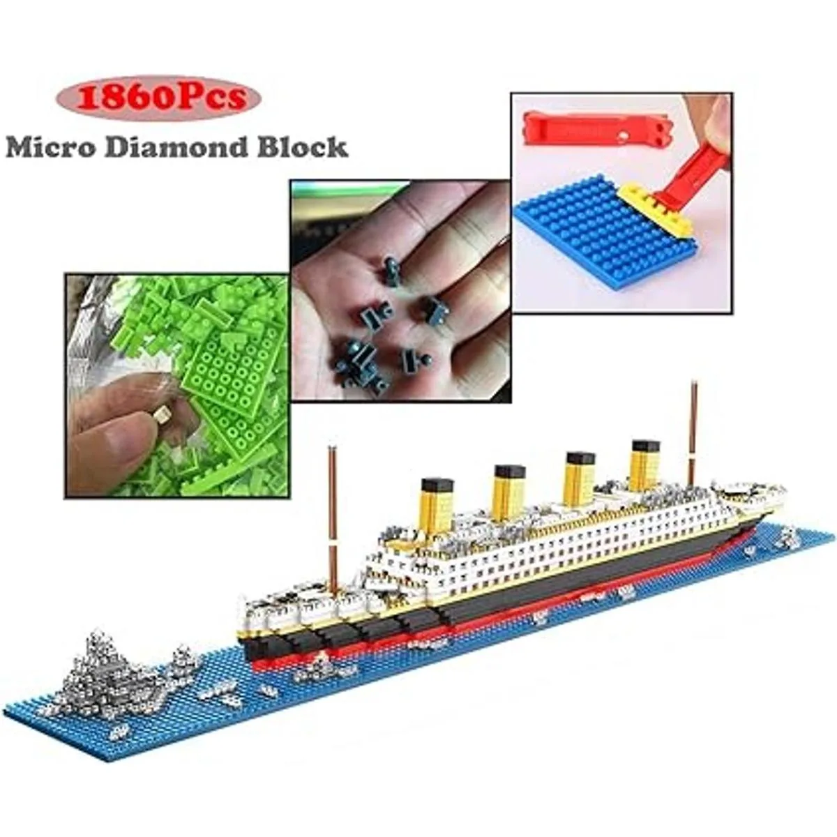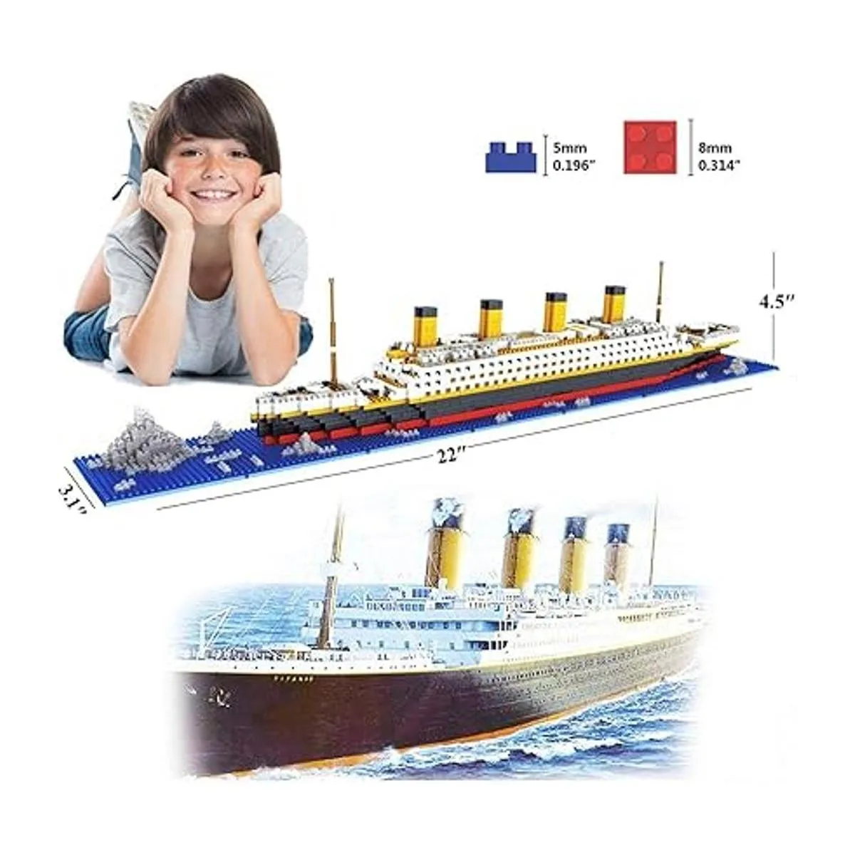 BIDIUTOY Titanic Ship Juego de bloques de construcción de modelo de nave, juegos de rompecabezas 3D, juguetes educativos de bricolaje, juguete de ladrillos con 1860 piezas de micro bloques, regalo ideal para niños y adultos