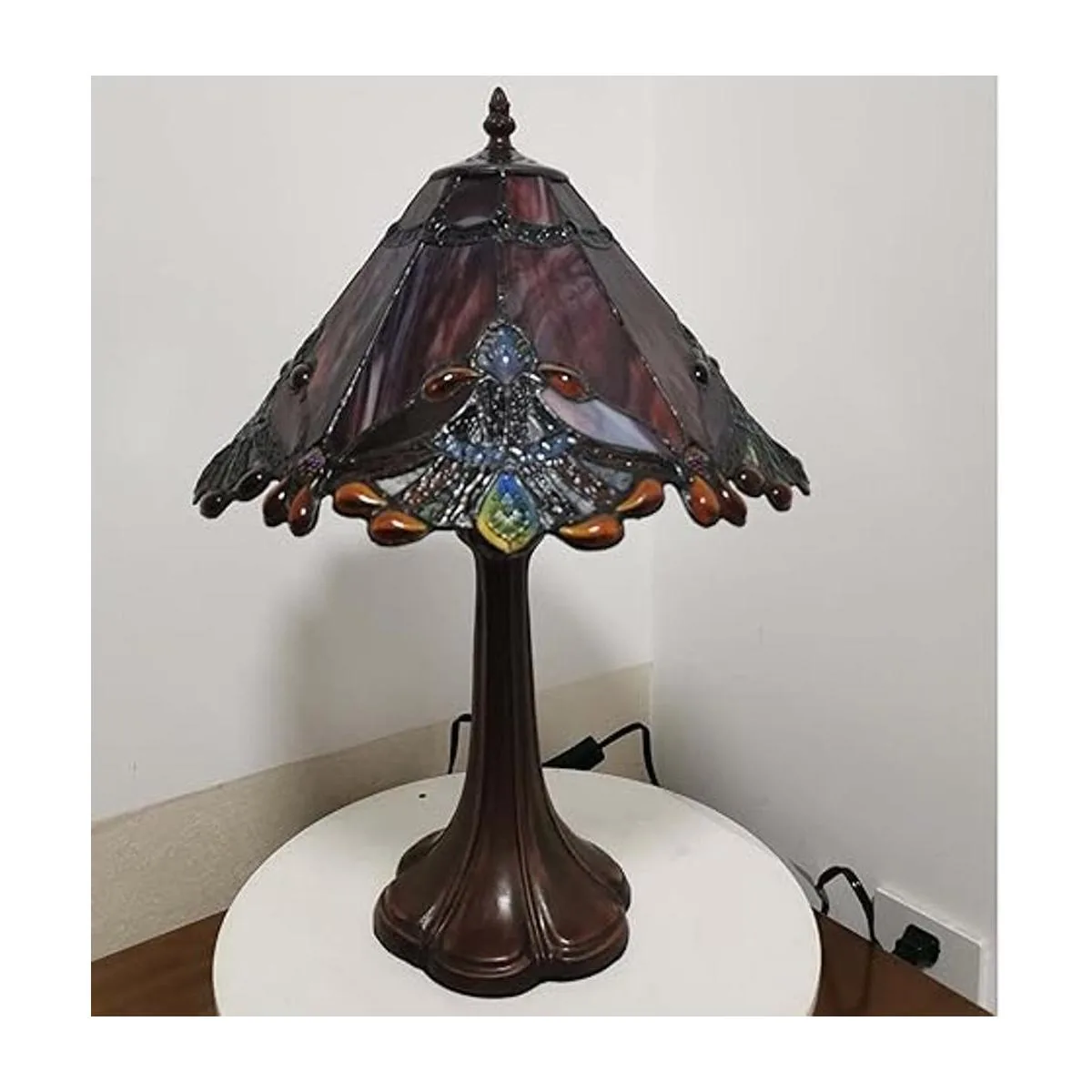 Hecho a mano: esta lámpara está hecha a mano por expertos artesanos; la pantalla está hecha de vidrieras y está preparada utilizando el método de lámina de cobre
