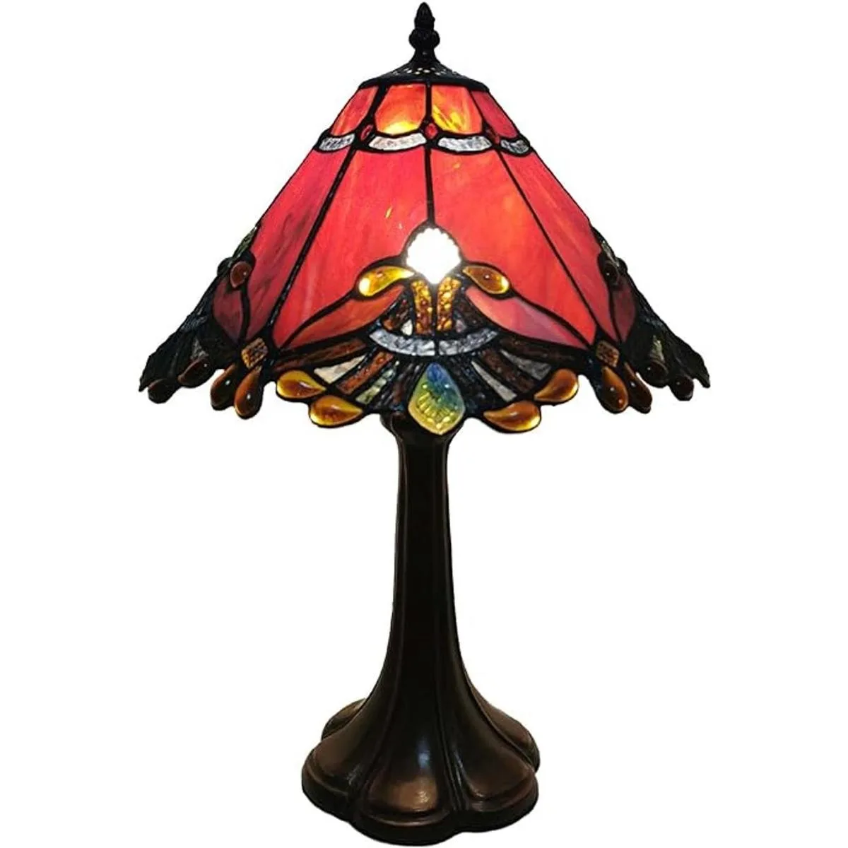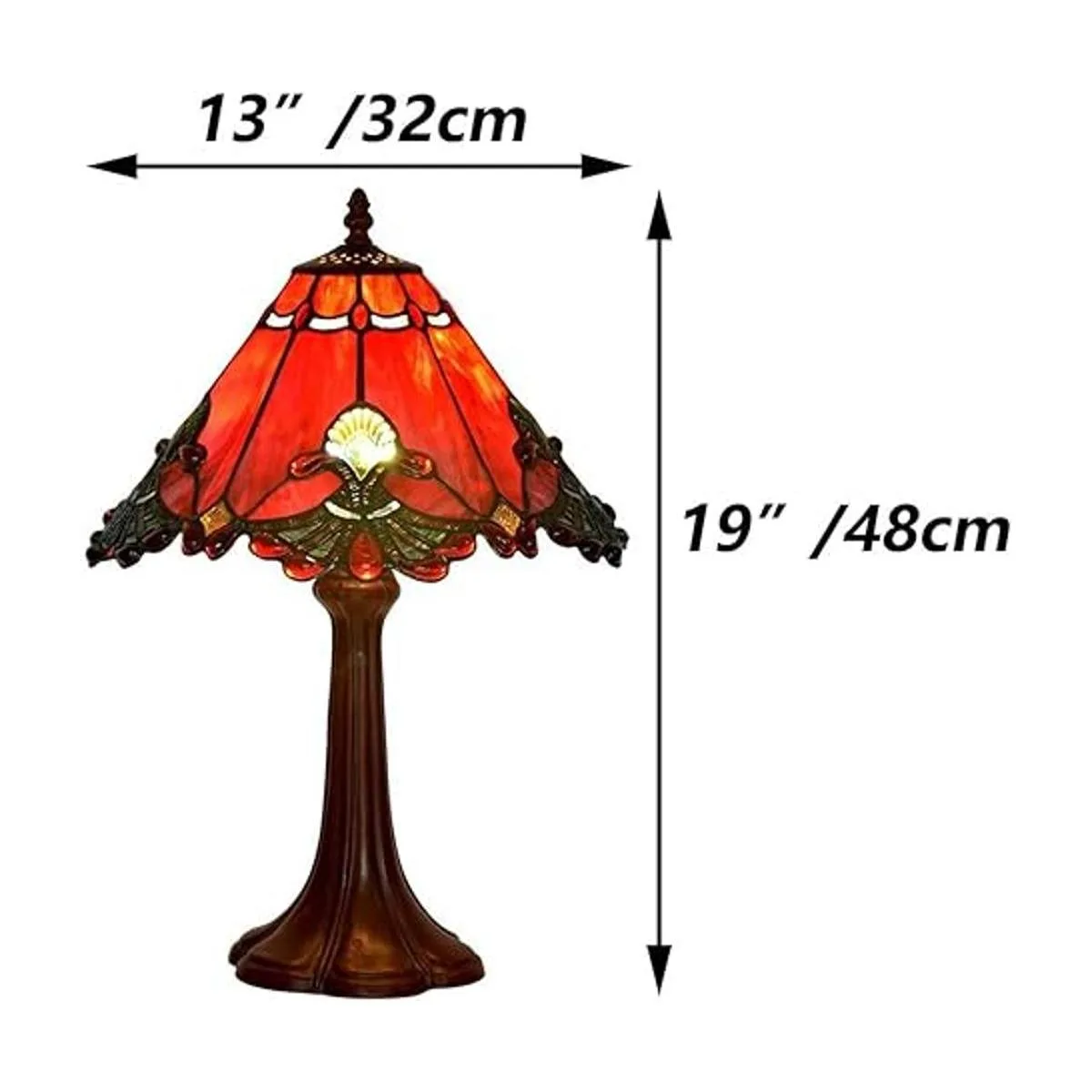 BIEYE L10021 Lámpara de mesa de cristal de color barroco Tiffany con 13 pulgadas de ancho, hecha a mano, base de metal para mesita de noche, dormitorio, sala de estar, 13 pulgadas de ancho x 19 pulgadas de alto, rojo