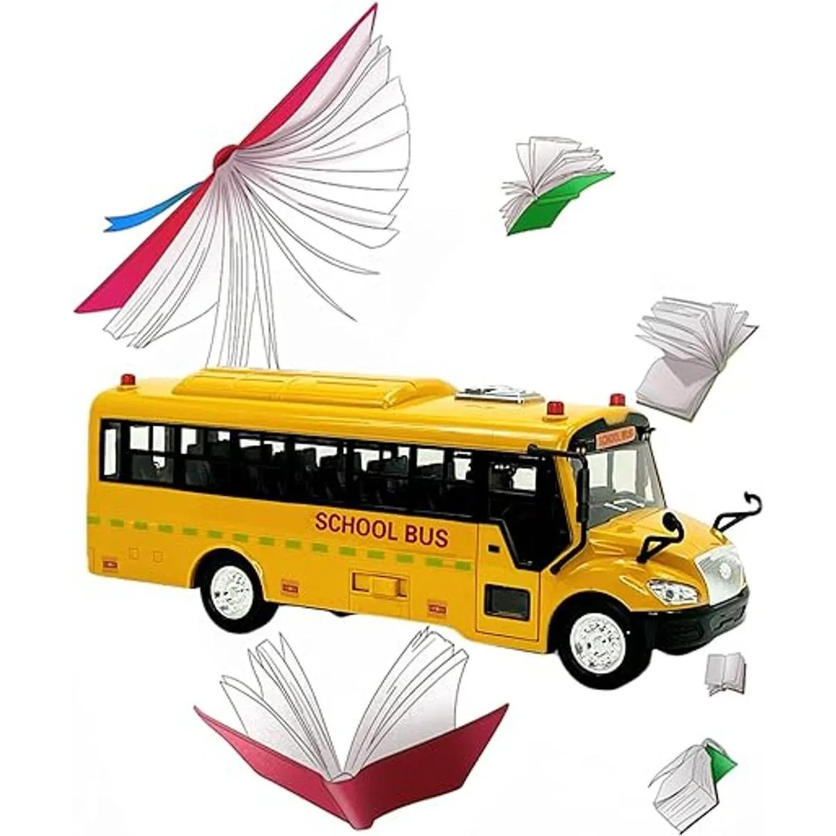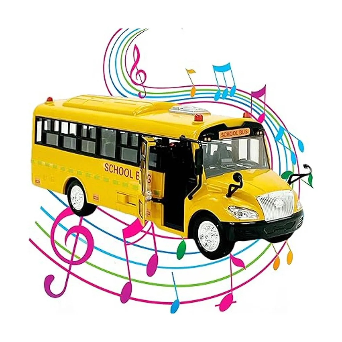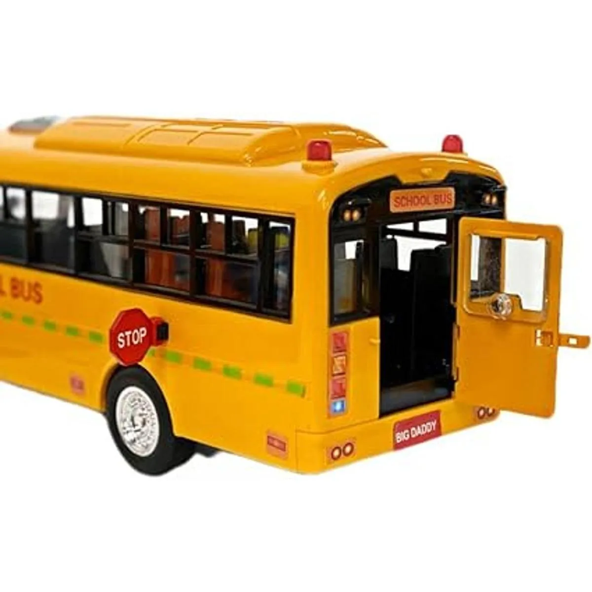Big Daddy Enorme autobús escolar amarillo con luces y puertas abiertas frescas, juguete para tirar hacia atrás, autobús escolar con sonidos y canciones para niñas, niños y niños pequeños