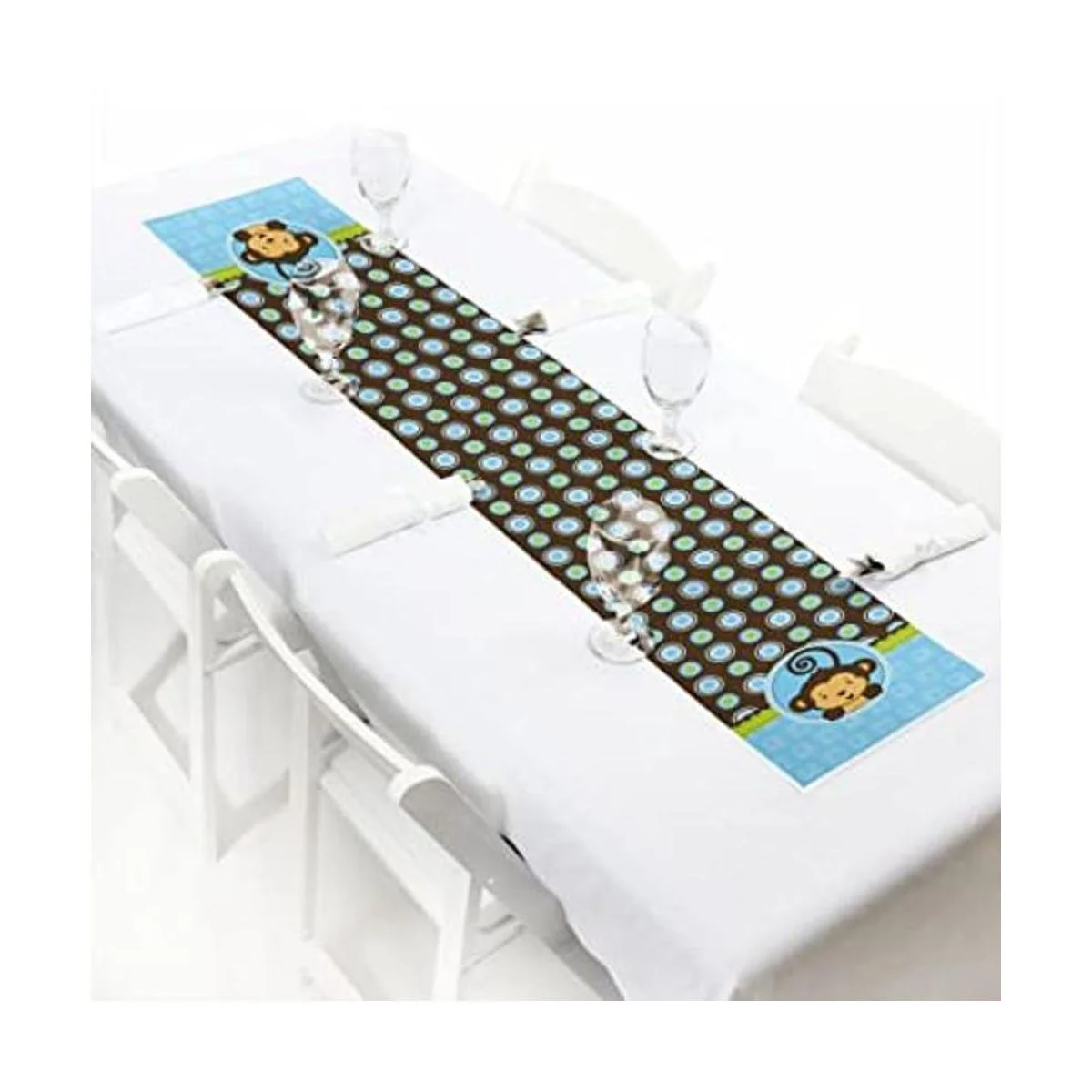 Big Dot of Happiness Blue Monkey Boy Camino de mesa de papel para baby shower o fiesta de cumpleaños 12.0 x 59.9 in