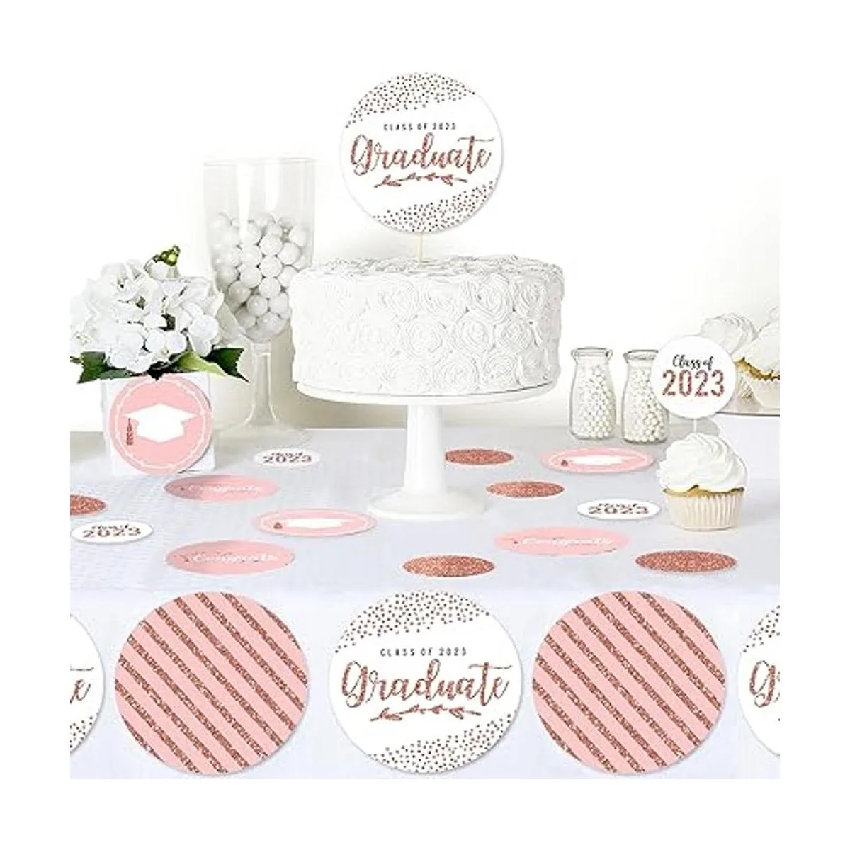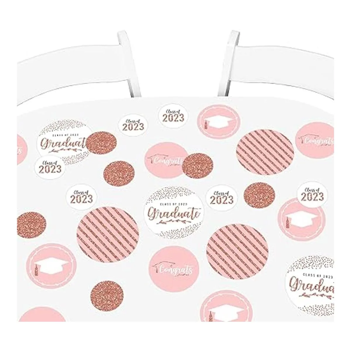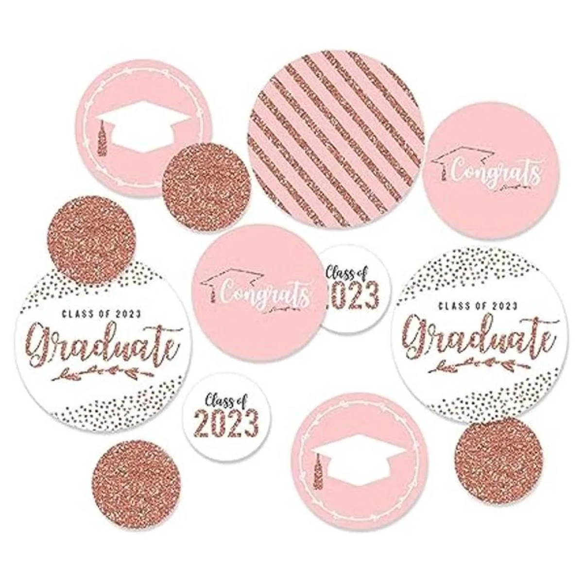 Big Dot of Happiness Grad de oro rosa Confeti de círculo gigante de fiesta de graduación 2023 Decoraciones de fiesta Confeti grande de 27 unidades