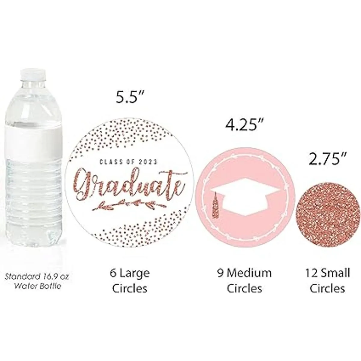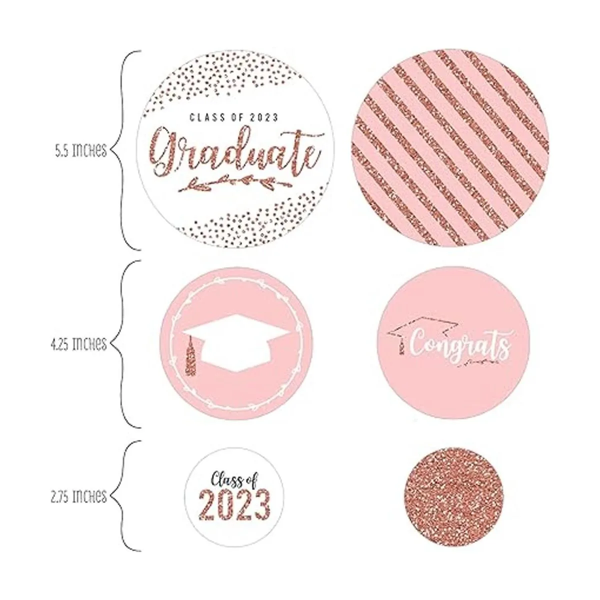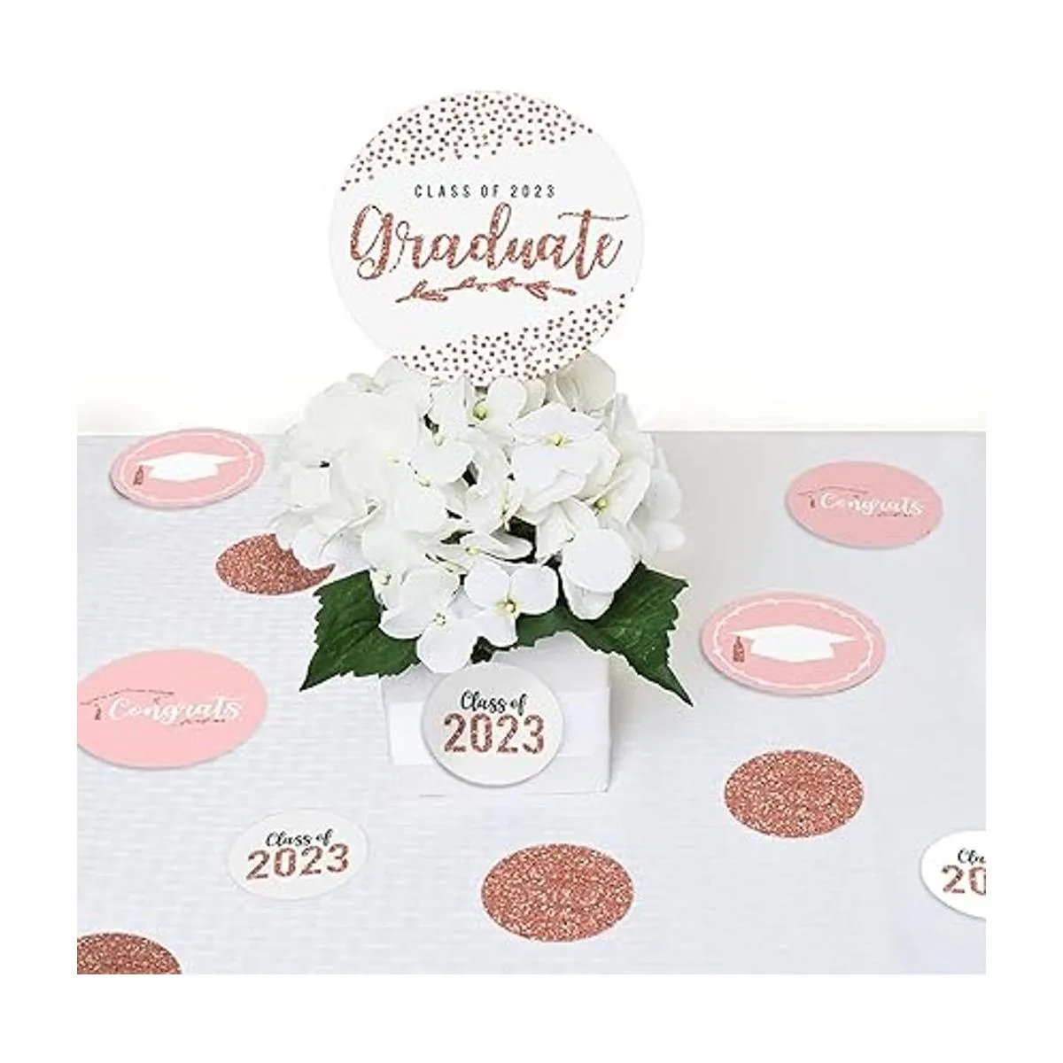 Big Dot of Happiness Grad de oro rosa Confeti de círculo gigante de fiesta de graduación 2023 Decoraciones de fiesta Confeti grande de 27 unidades