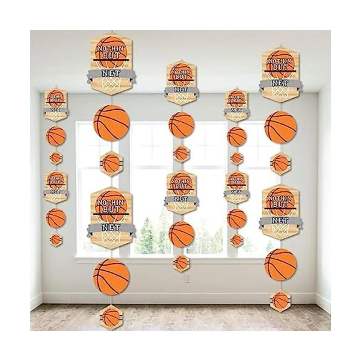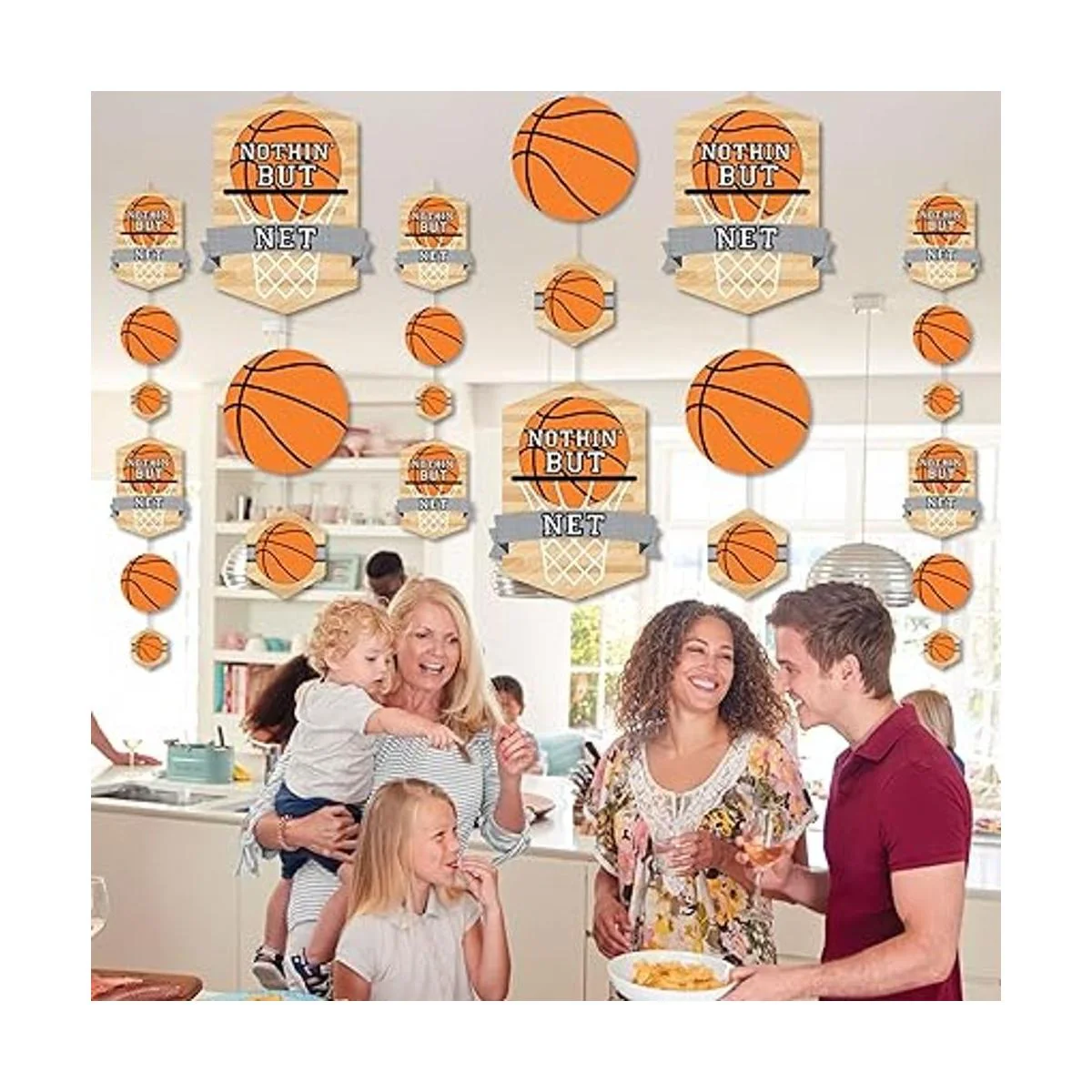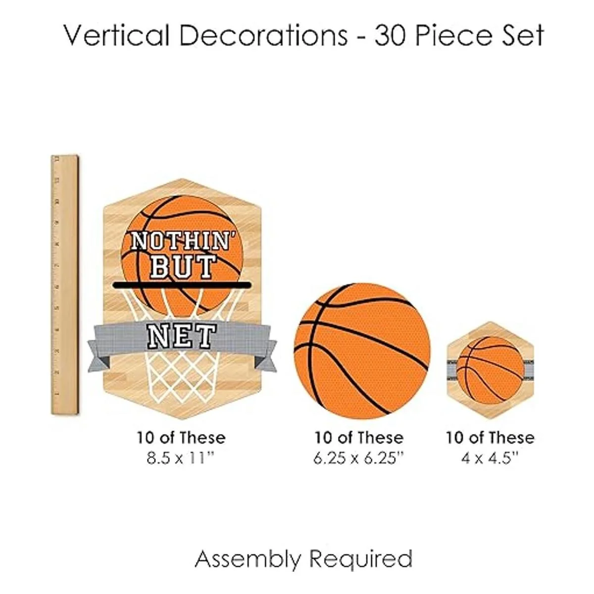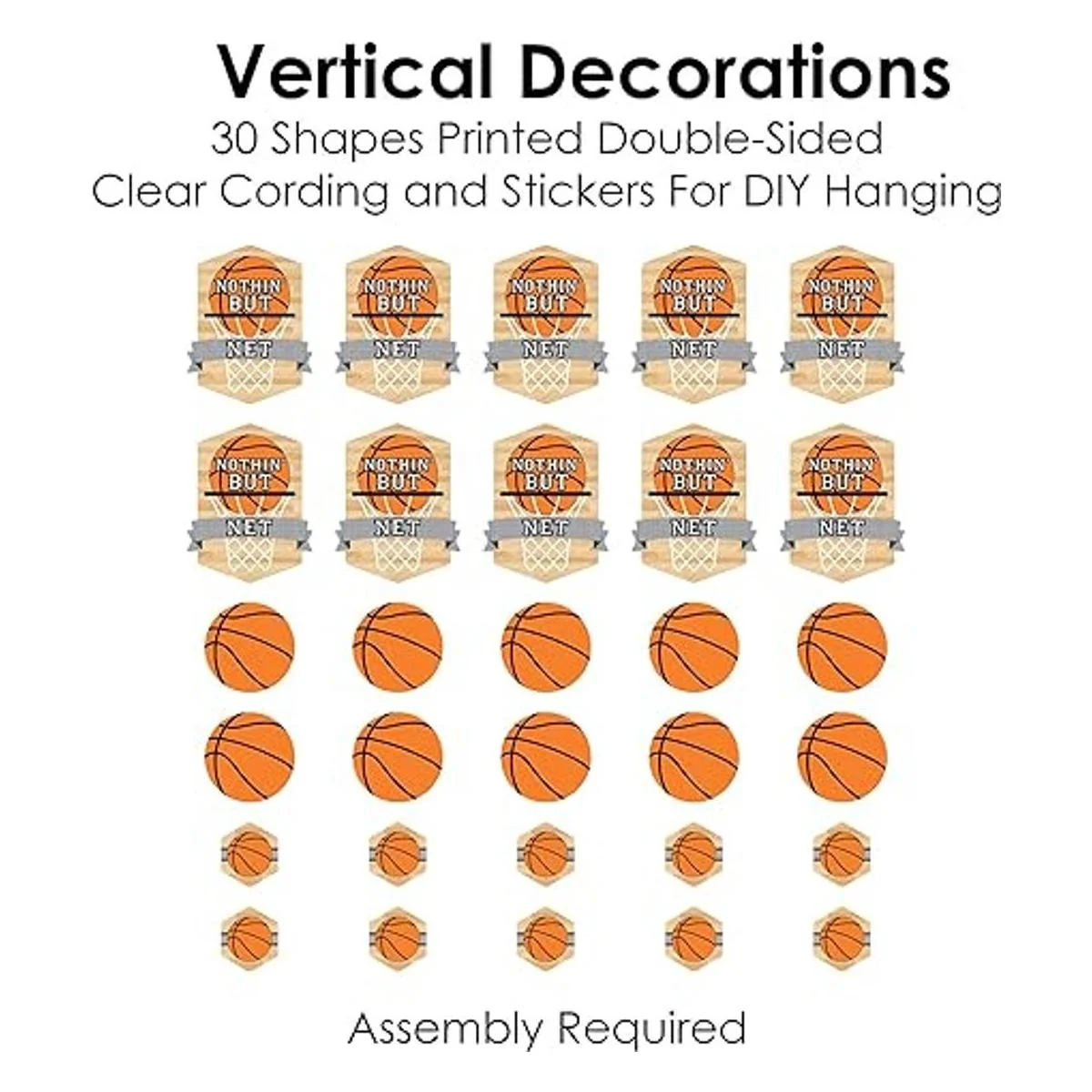 Big Dot of Happiness Nothin but Net Baloncesto Ducha de bebé o fiesta de cumpleaños Decoración vertical colgante 30 piezas