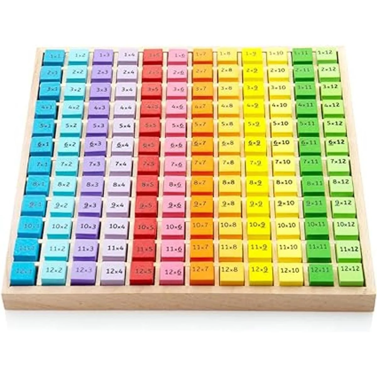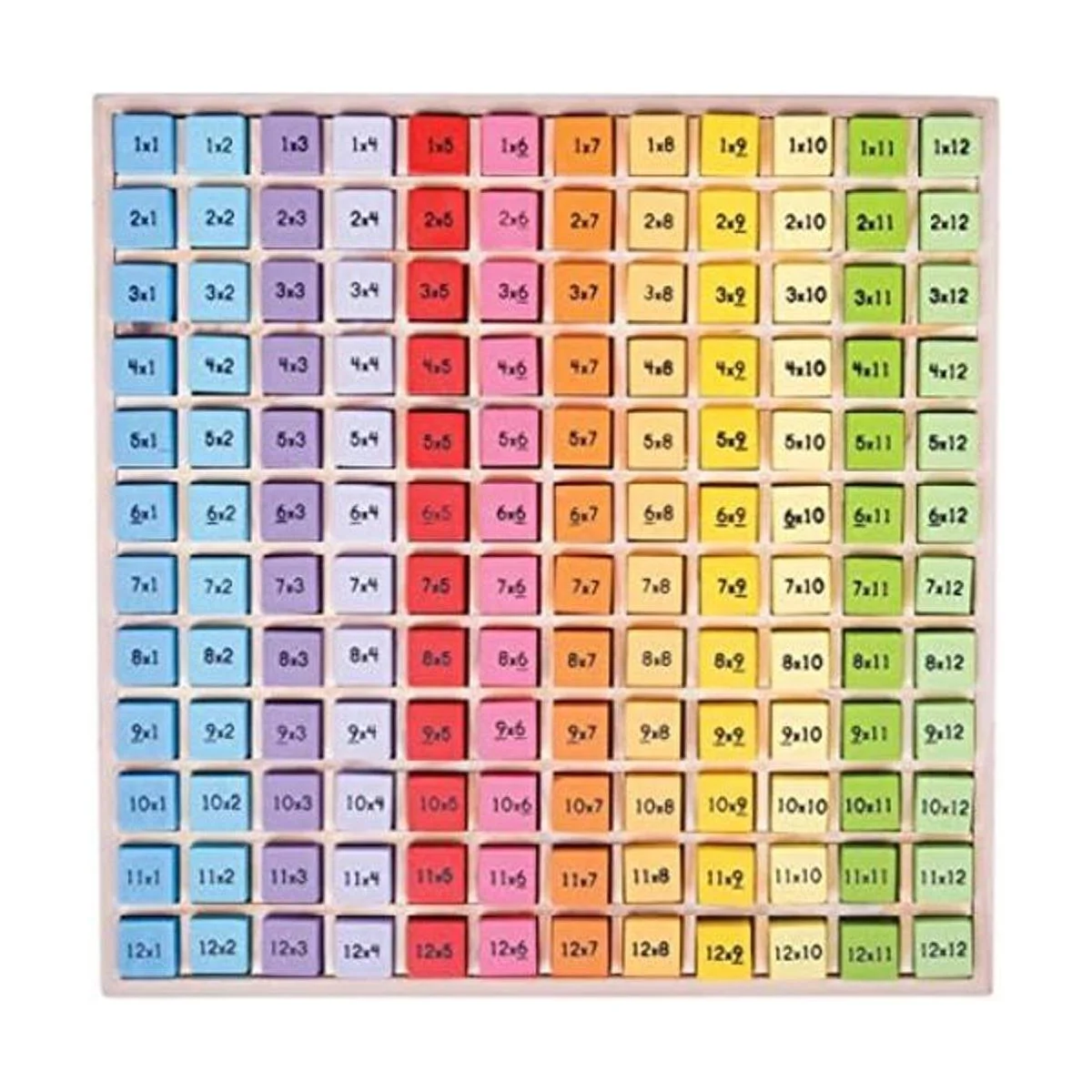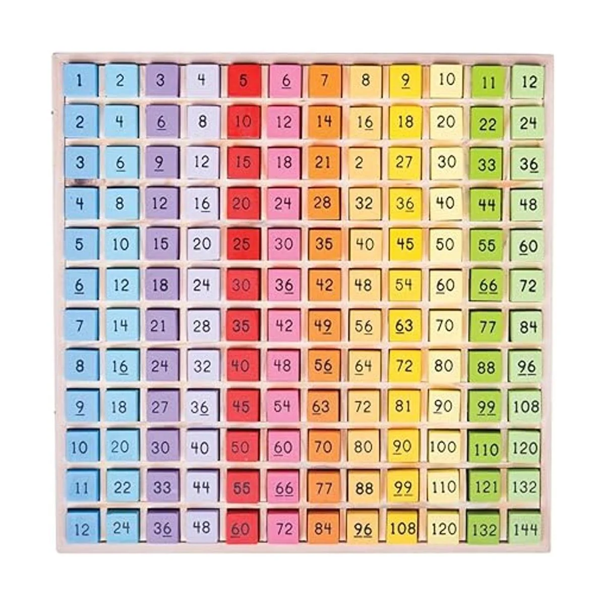 Bigjigs Toys, Juego de mesa de multiplicación, juguetes de madera, mesas de 1 a 12 veces, juegos de mesa de tiempos para niños, juegos de números, números para niños, juguetes educativos, juguetes Montessori, bandeja de madera