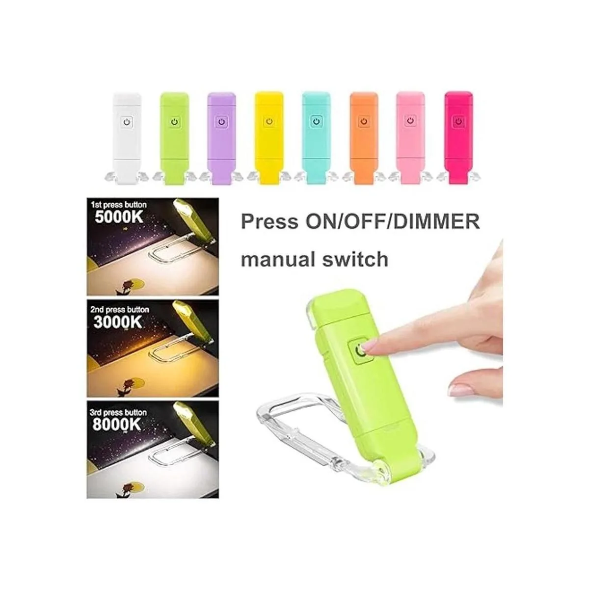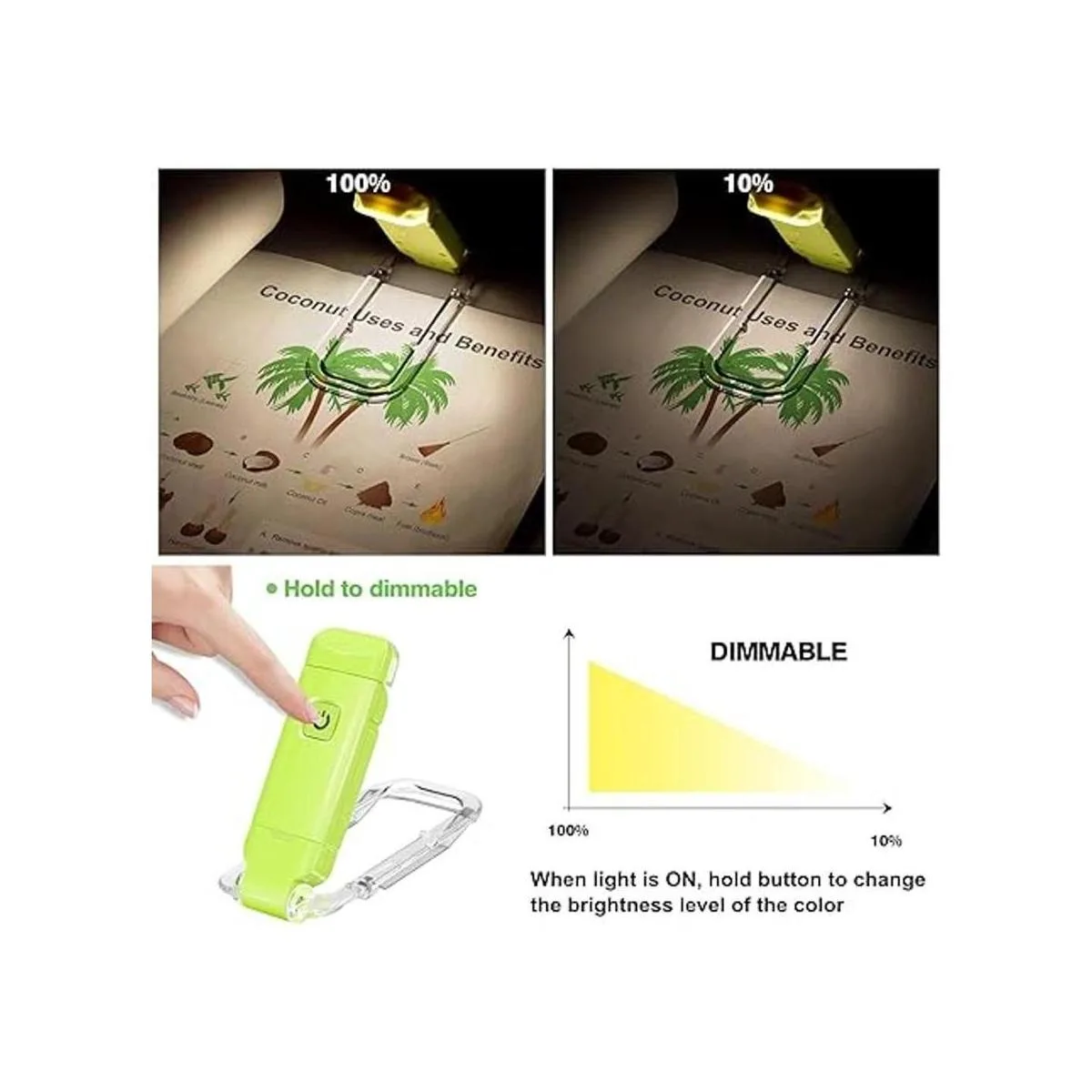 BIGMONAT Luz de lectura recargable con clip para libros, luces de lectura para estudio en cama, lámpara de marcador de luz de libro pequeño para niños, 2 brillo ajustable para protección ocular, verde