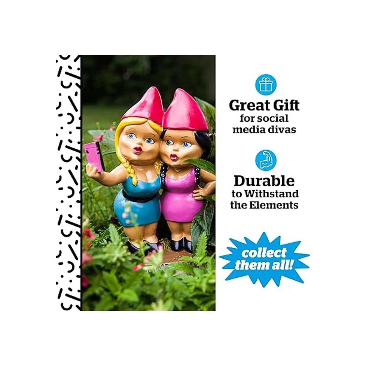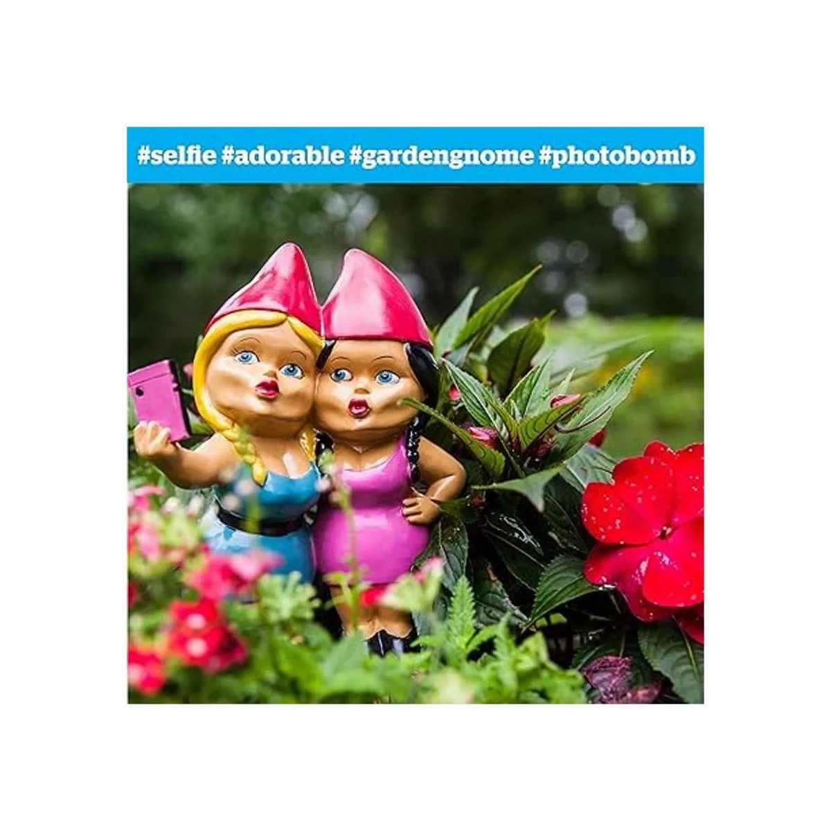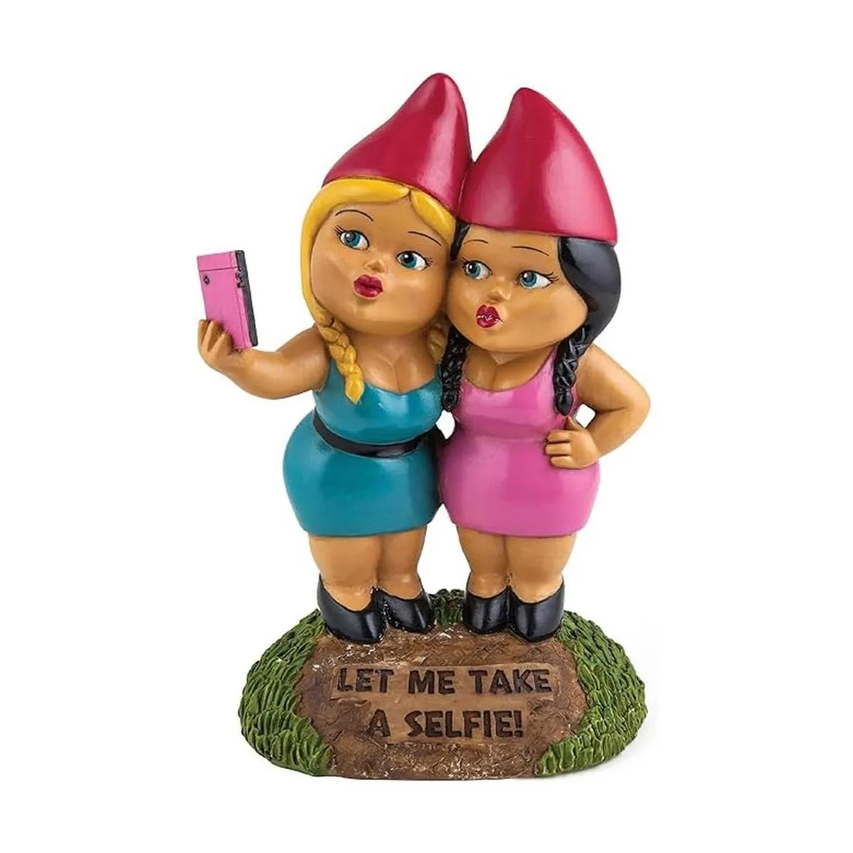 BigMouth Inc. The Selfie Sisters Gnomo de jardín, estatua divertida de gnomo de césped de 9 pulgadas de alto, decoración de jardín resistente a la intemperie