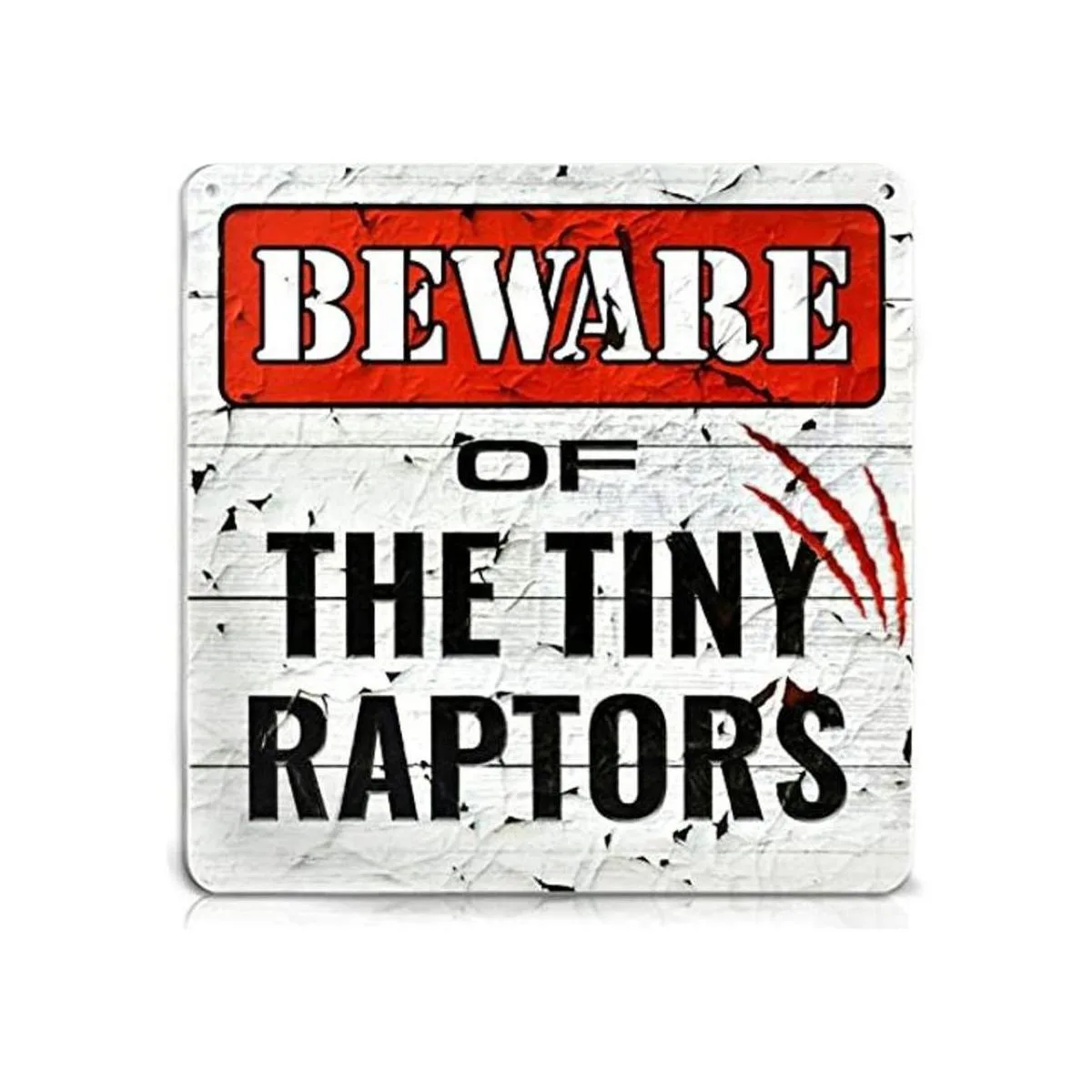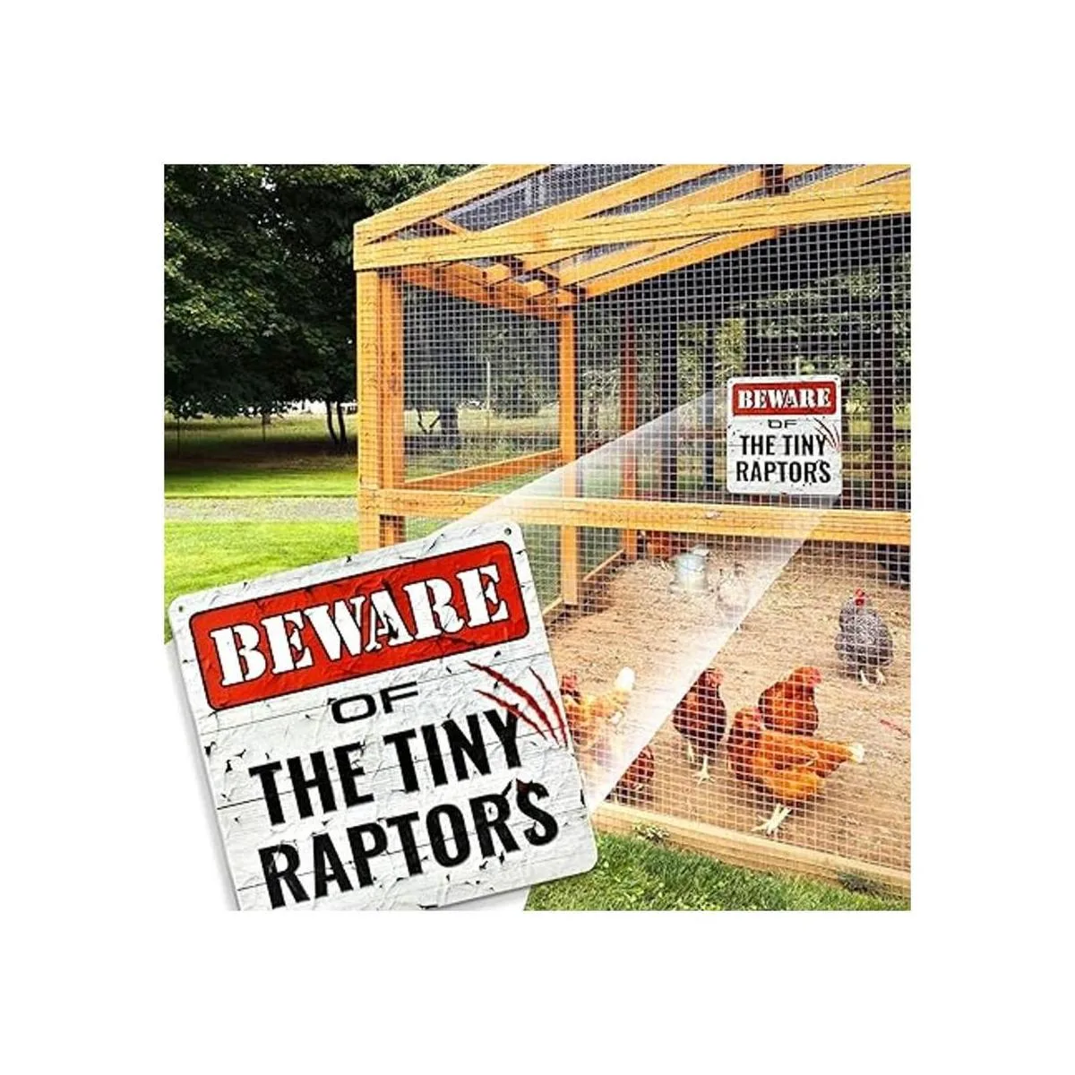 Bigtime Signs Beware of Tiny Raptors Letrero de 12 x 12 pulgadas, divertido gallinero, granja, hogar, cocina, al aire libre, gallo o gallinero, 2 agujeros para colgar fácilmente, material de PVC fuerte, decoración tonta