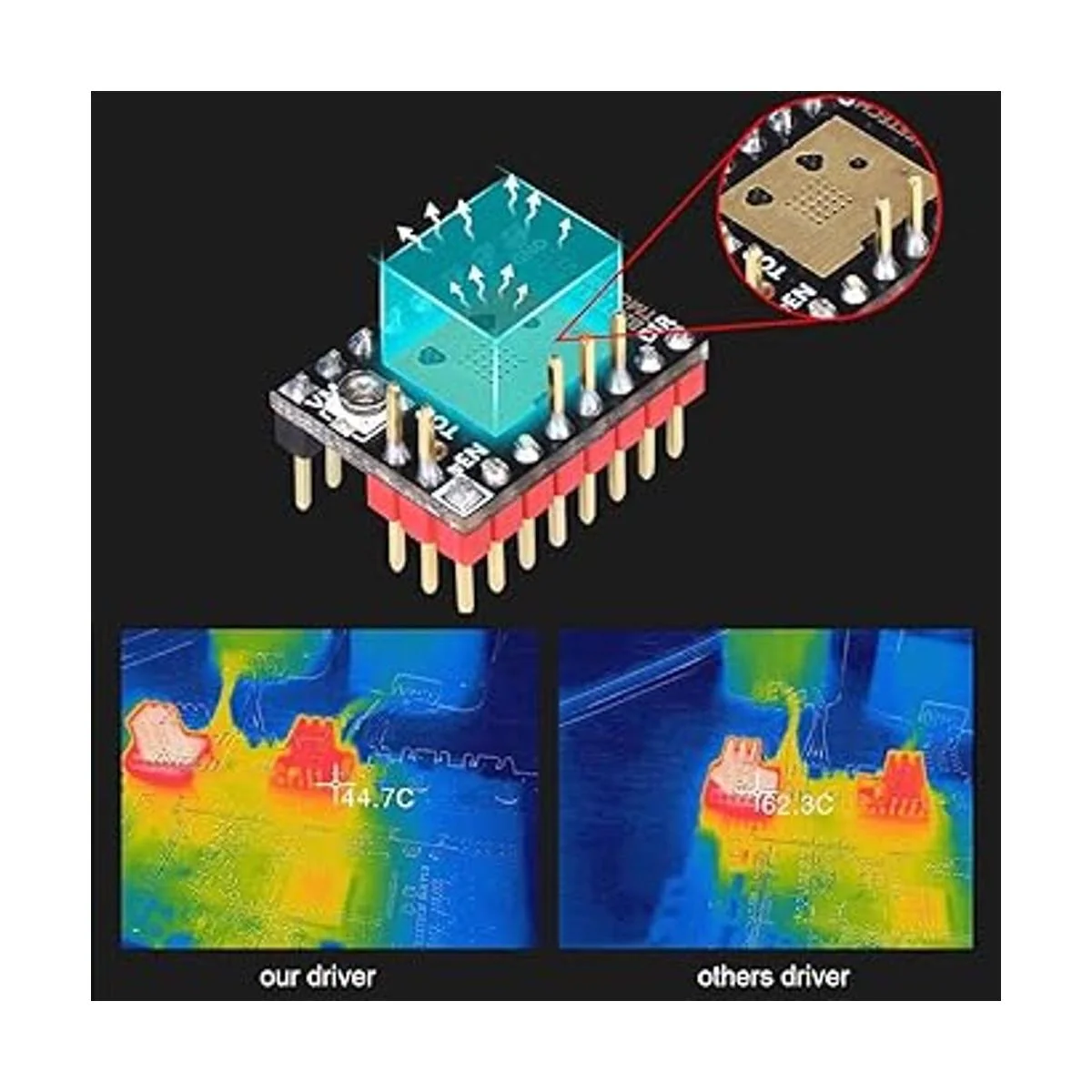 Ultrasilencioso: el StealthChop2 permite un algoritmo de picador de alta precisión sin ruido para un movimiento inaudible y un paro inaudible del motor, lo que lo hace súper silencioso durante la impresión. Y la unidad flexible de interpolación microPlyer proporciona hasta 256 subdivisiones, lo que puede lograr un control sinusoidal perfecto incluso en sistemas con frecuencia de pulso limitada.