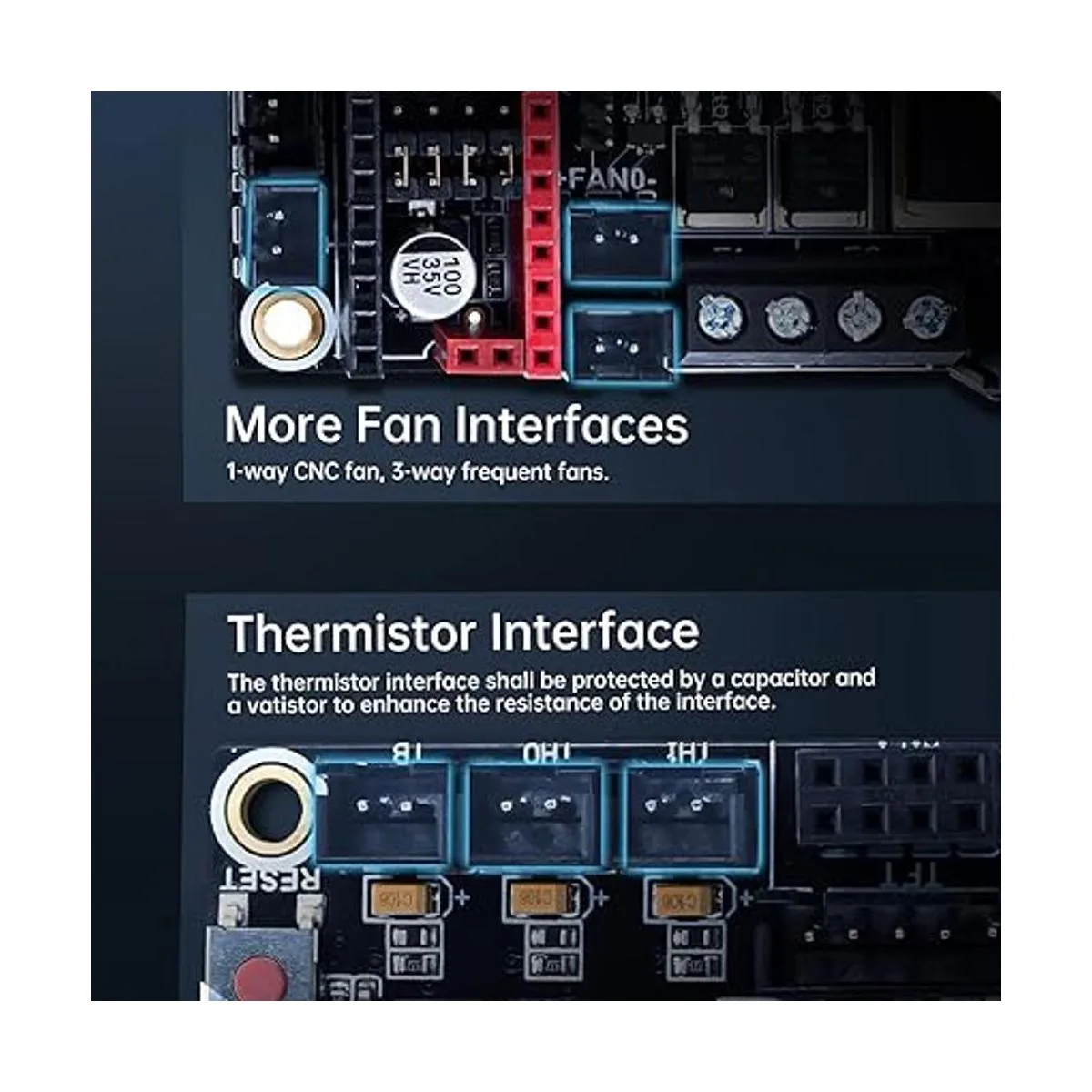 La placa de control SKR V1.4 Turbo puede suministrar energía a la pantalla TFT, BLtouch, NeoPixel conectando un módulo de alimentación externo DC5V; además, la interfaz I2C, SPI, WiFi está reservada para facilitar el bricolaje del cliente.