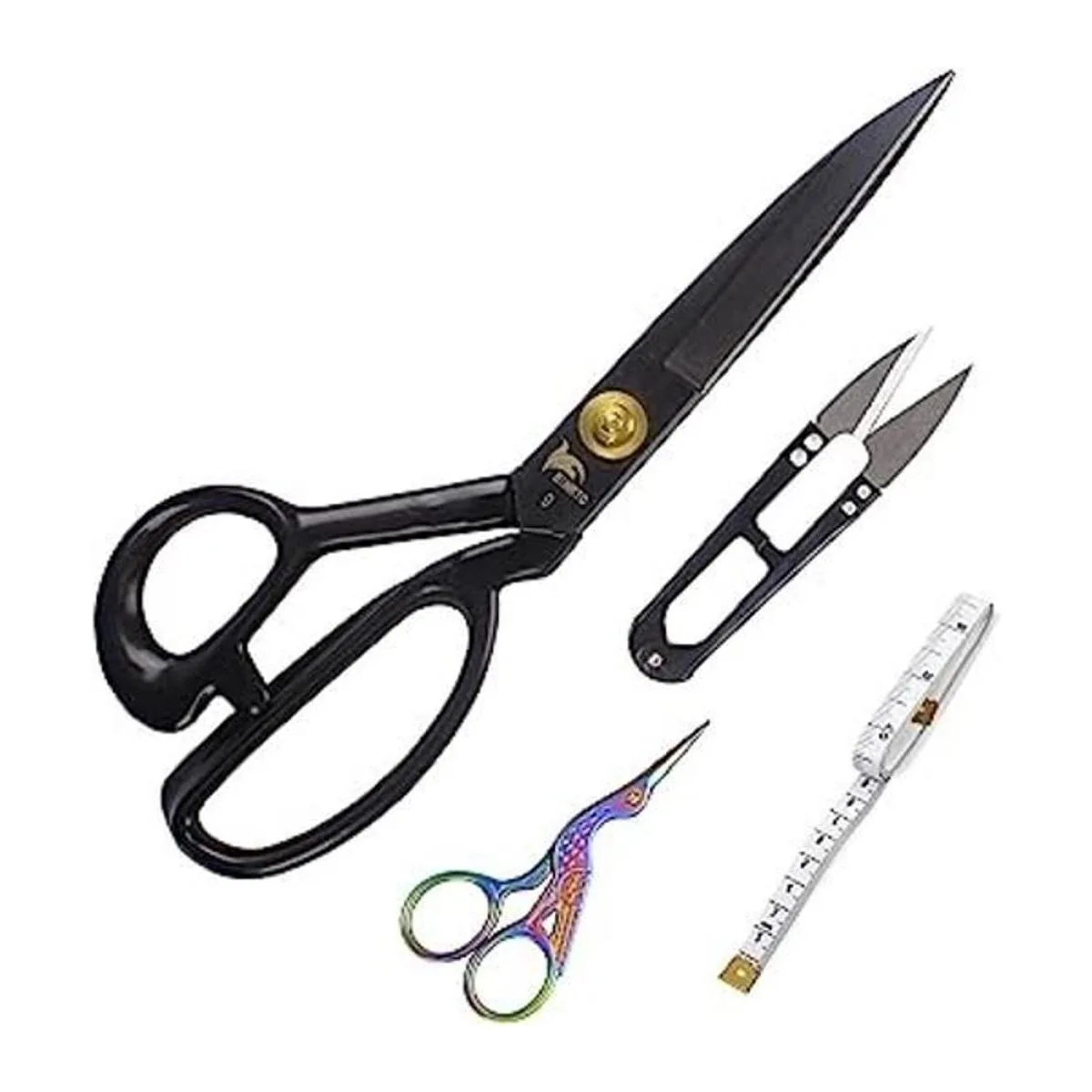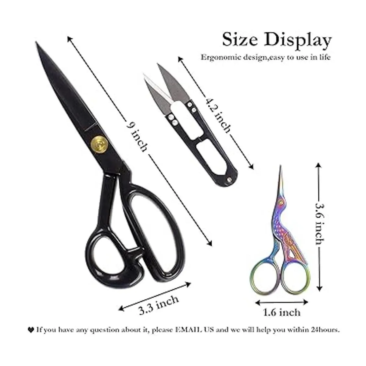 Juego de tijeras de alta calidad: incluye nuestras tijeras de costura profesionales de 9 pulgadas, tijeras pequeñas de 3.6 pulgadas, tijeras en forma de U de 4.2 pulgadas y cinta métrica de 60 pulgadas, viene con una elegante caja que es adecuada para uso personal o como un regalo perfecto.
