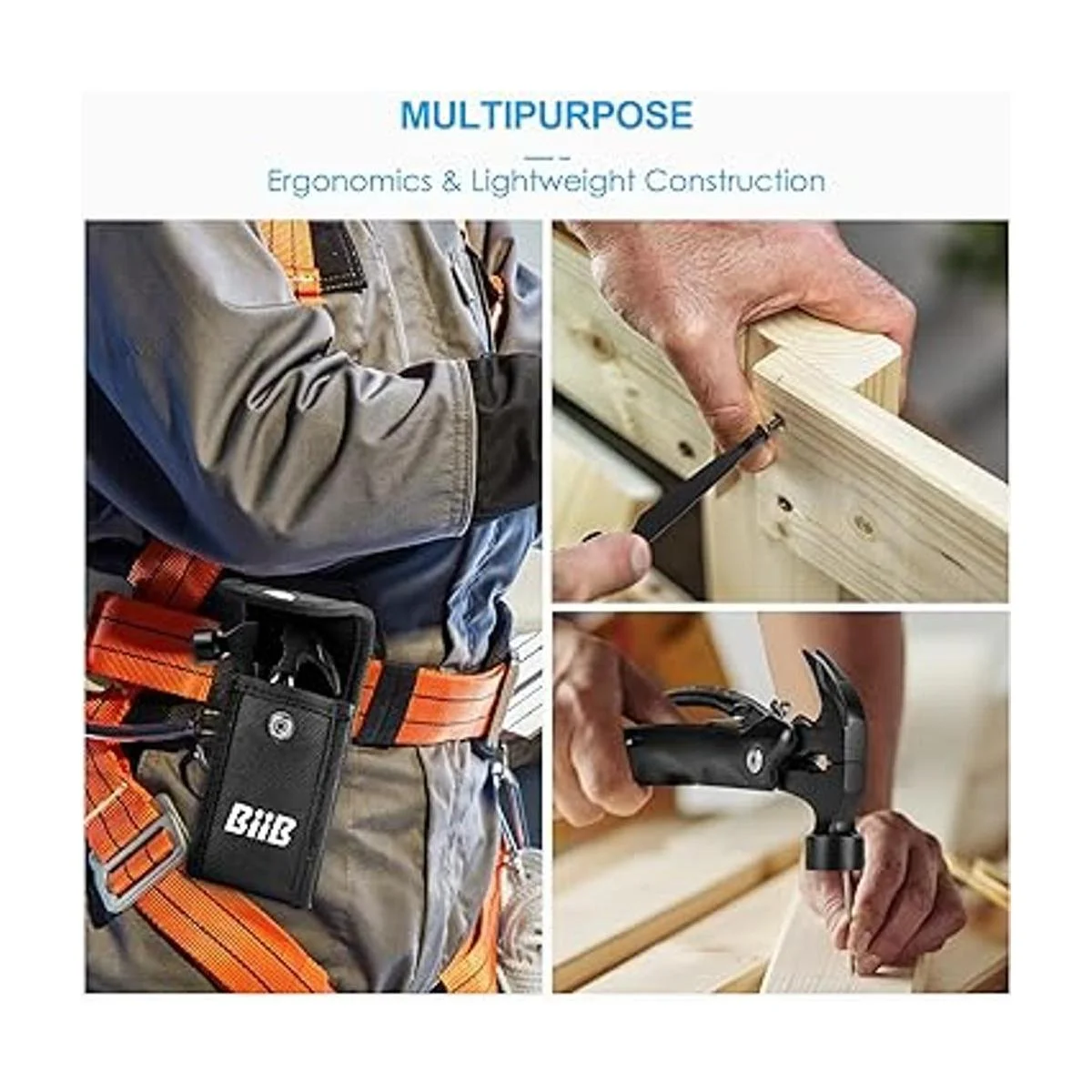 Martillo multiherramienta 12 en 1: martillo de herramientas BIIB con 12 funciones, incluyendo un mini martillo, garra de clavos, alicates, alicates regulares, cortador de tuberías, cuchillo, sierra, cuchillo dentado, lima, destornilladores de cabeza plana, destornilladores Phillips, abrebotellas, esta es una herramienta más útil en la vida cotidiana. Y este martillo de diseño único es una opción perfecta de regalos para hombres a los que les gusta camping, montañismo, renovación del hogar o trabajos de bricolaje.