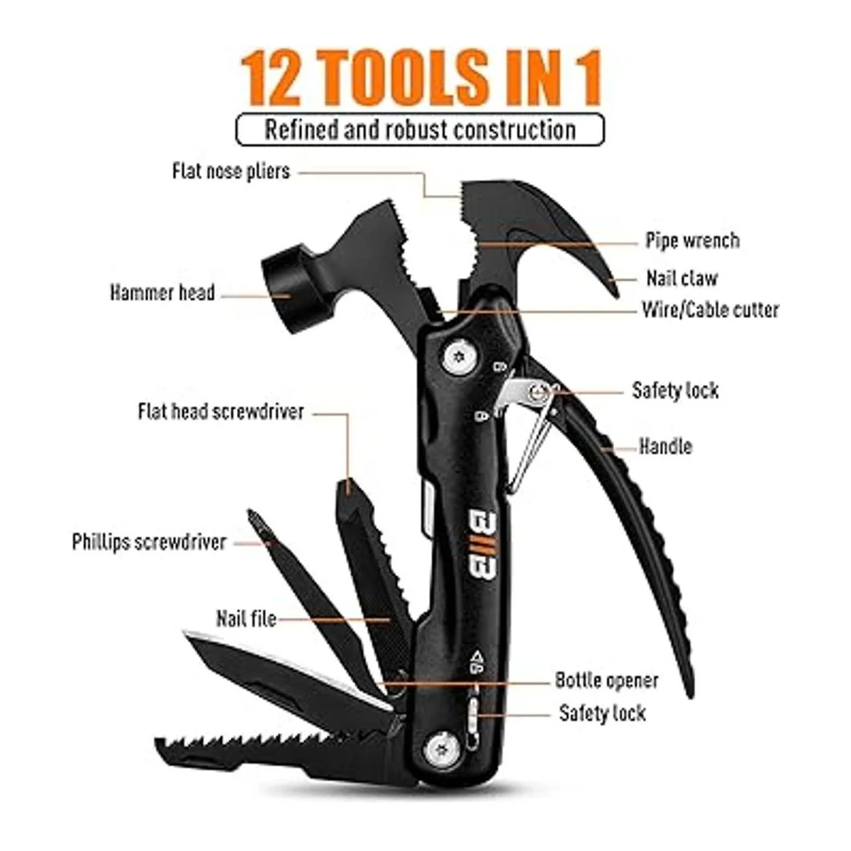 BIIB Regalos de relleno de calcetines para hombres, multiherramienta de martillo 12 en 1, accesorios de campamento, herramientas para hombres, regalos para Navidad, cumpleaños, regalos de equipo de campamento para papá, marido, novio, abuelo