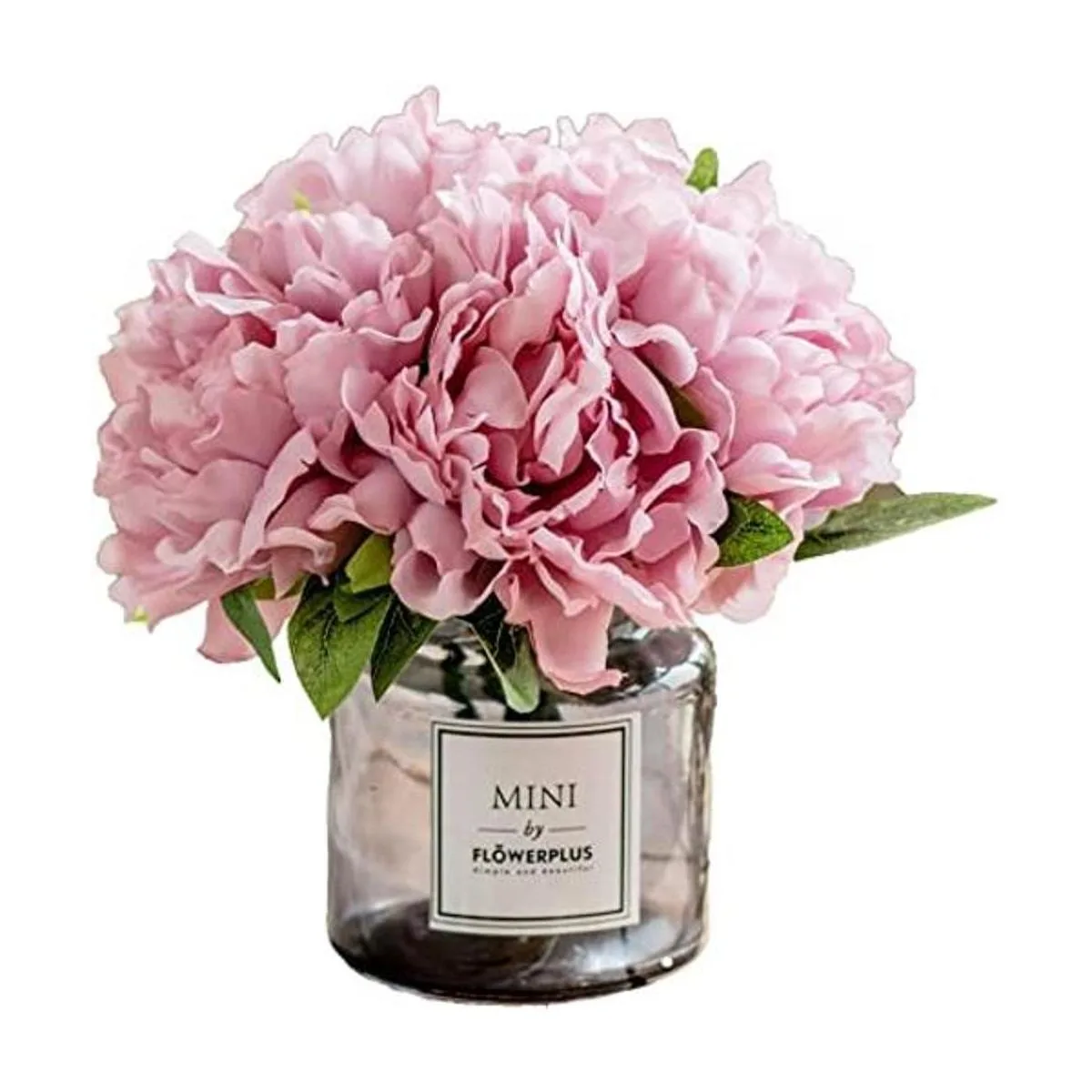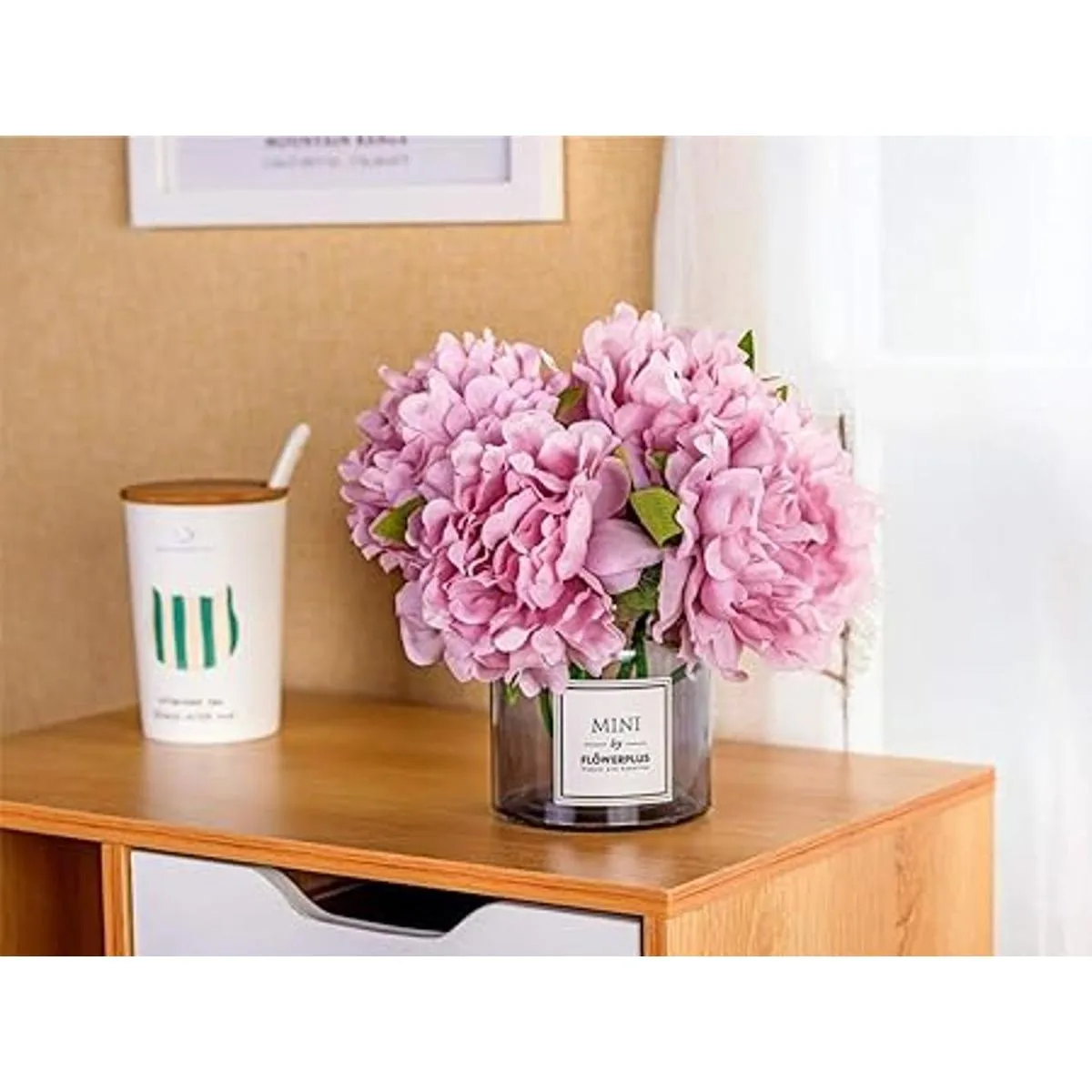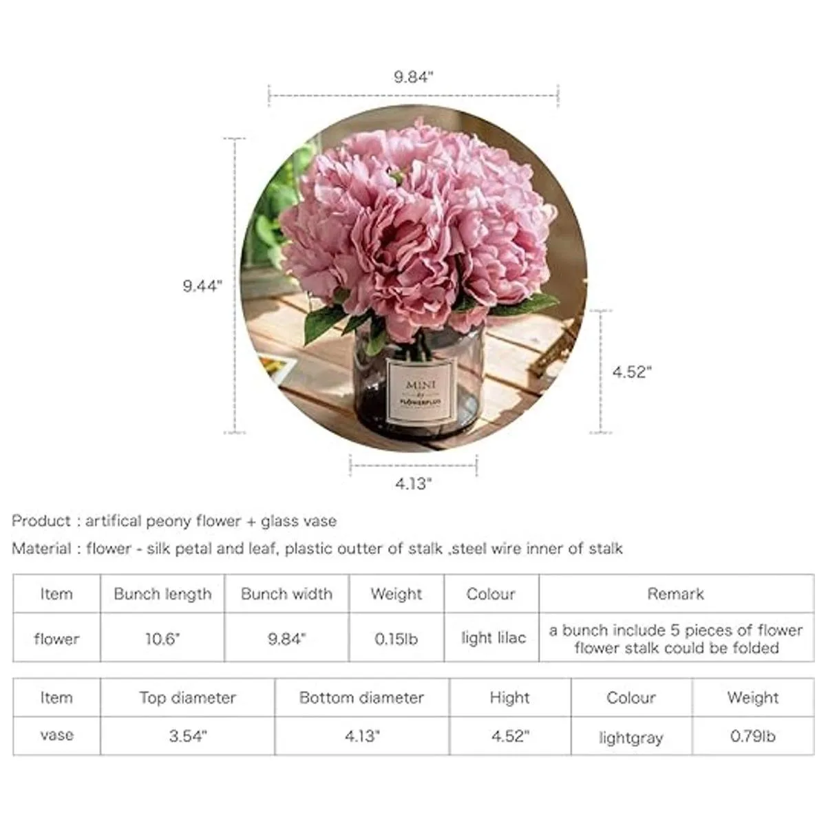 Billibobbi , Flores artificiales con jarrón, flores de peonía falsas en jarrón gris, arreglos florales de imitación para decoración del hogar, lila claro, S