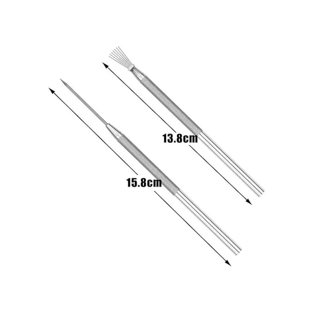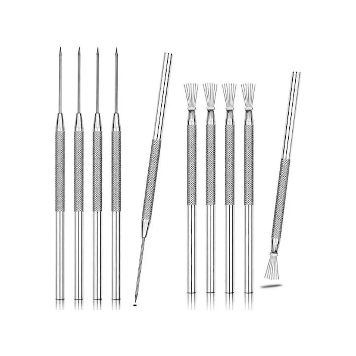 Tamaño y cantidad: hay 5 herramientas de aguja de arcilla y 5 piezas de herramientas de textura de alambre de plumas en este paquete a un precio increíble; la herramienta de aguja es de 6.1 in de largo con una aguja de 1.1 in de largo y la herramienta de textura es de 5.1 in de largo