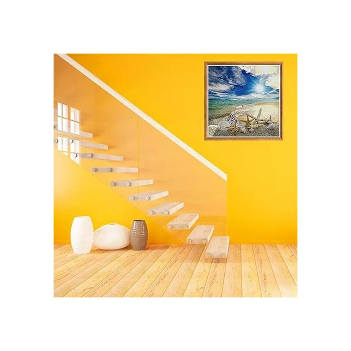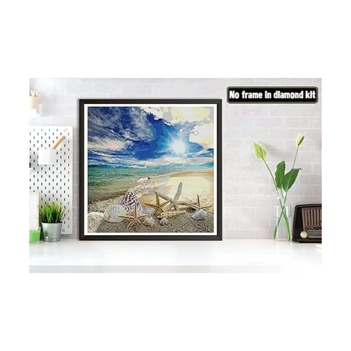 Bimkole Kits de pintura de diamantes 5D para paisaje de playa, taladro completo, sol, estrella de mar, juego de bordado de diamantes de imitación, juego de pintura con diamantes por número, kits de punto de cruz, decoración de pared para el hogar 12 x 12 pulgadas