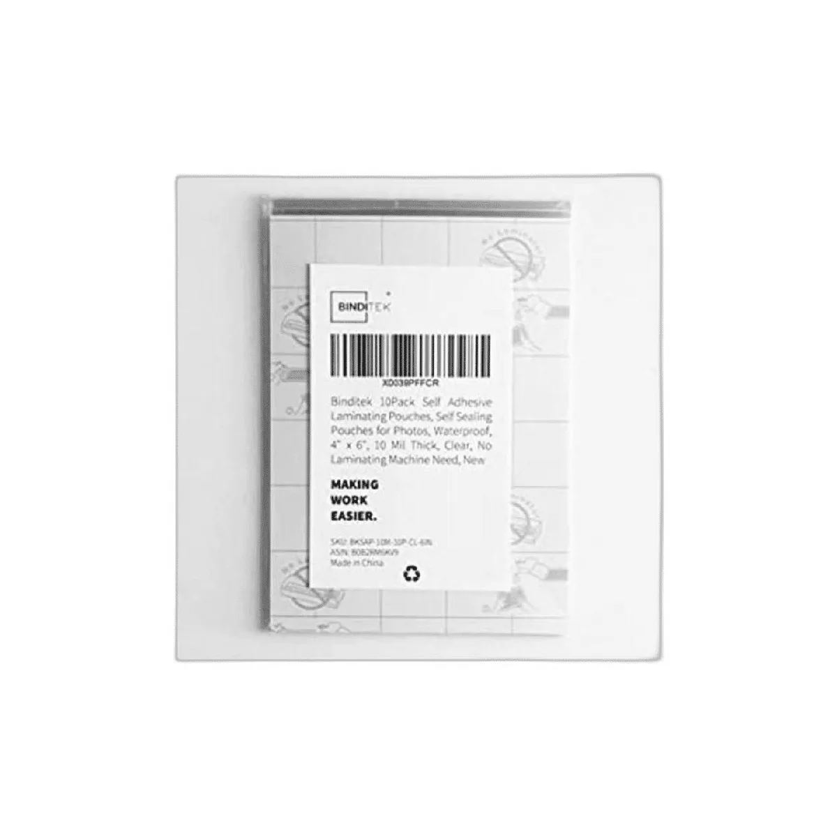 Binditek Paquete de 10 bolsas de laminación autosellantes, bolsas de laminación autoadhesivas de 10 mil, 4.5 x 6.4 pulgadas para fotos, acabado brillante, no necesita máquina laminadora